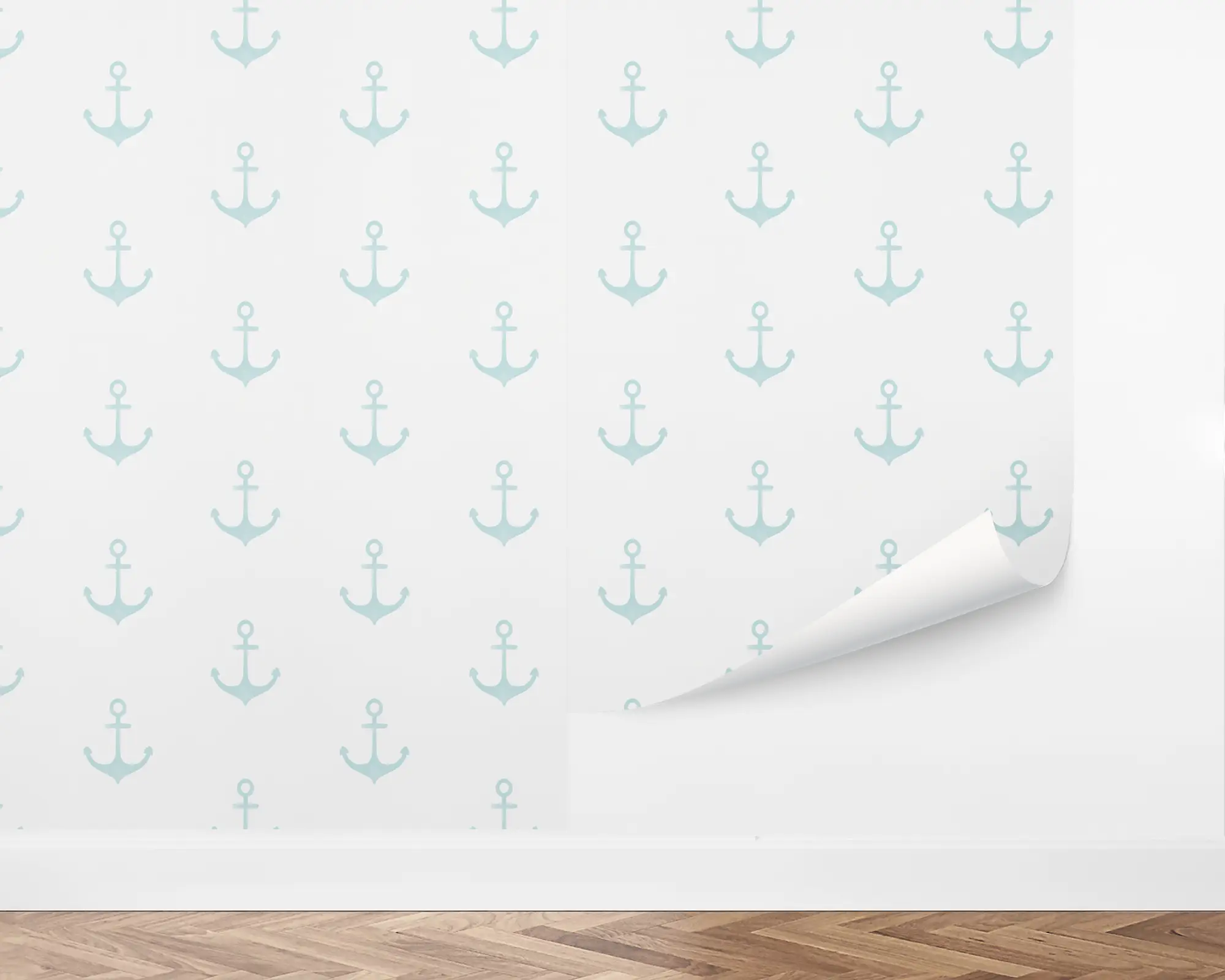 Instantly feel a salty breeze and hear the crash of waves when you place our Anchors Away Peel And Stick Removable Wallpaper on your walls! Textured, blue anchors neatly stack in vertical rows across a white background, in this design.