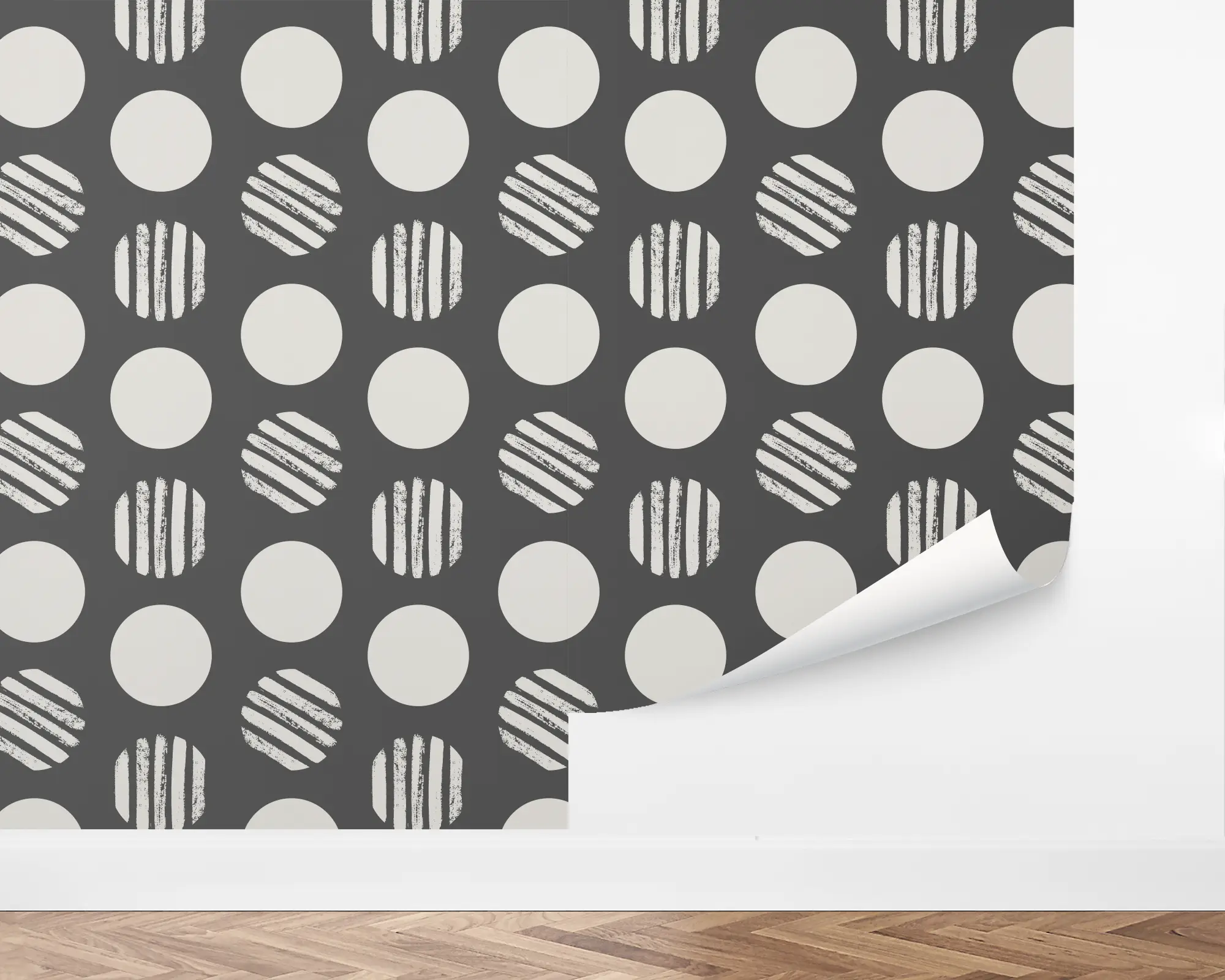 Our Batik Circles Peel And Stick Removable Wallpaper create a classic statement wall in any room in your home. Egret illustrations of circles are spread around a charcoal background. Choose from hundreds of color combinations to match your room's style!
