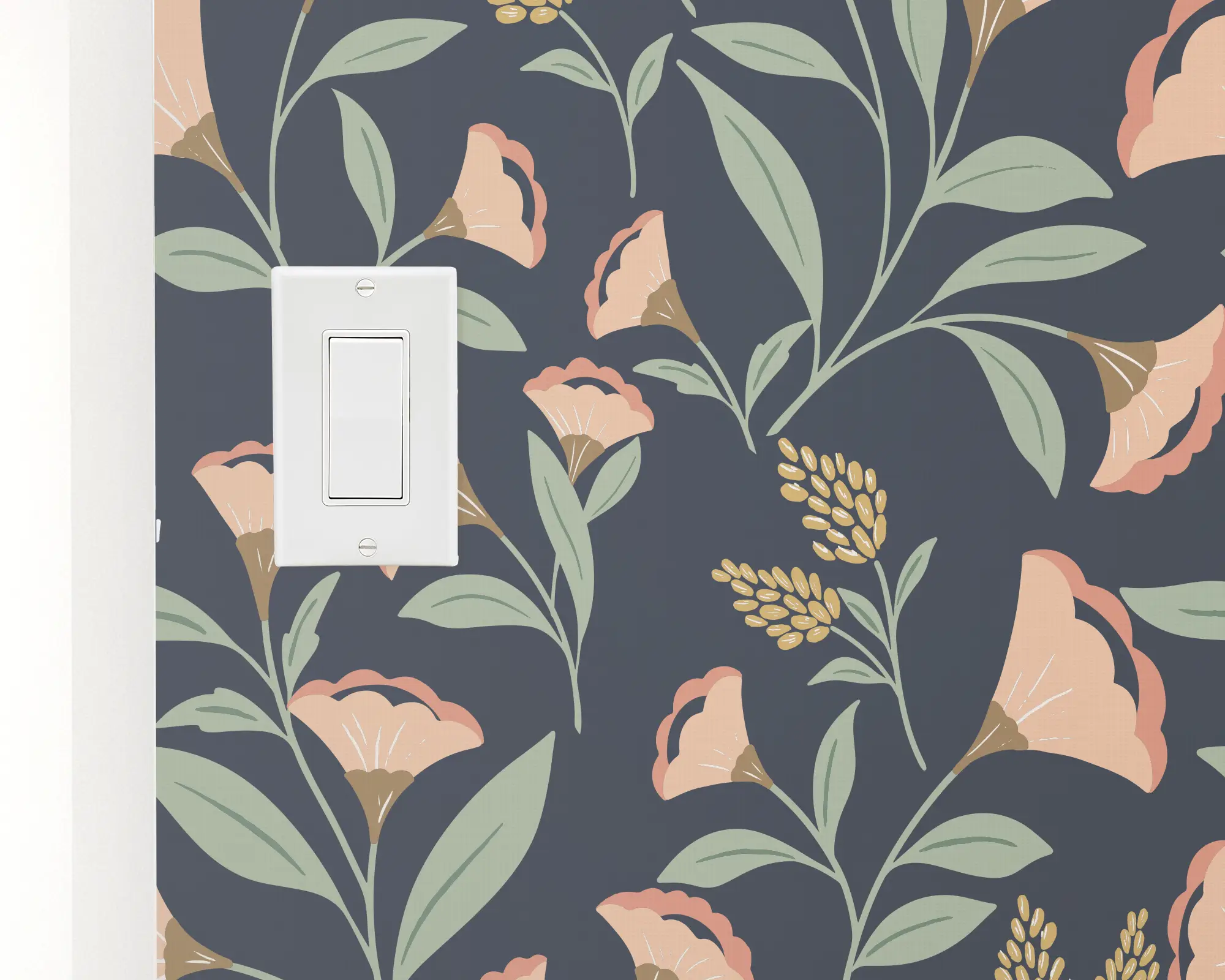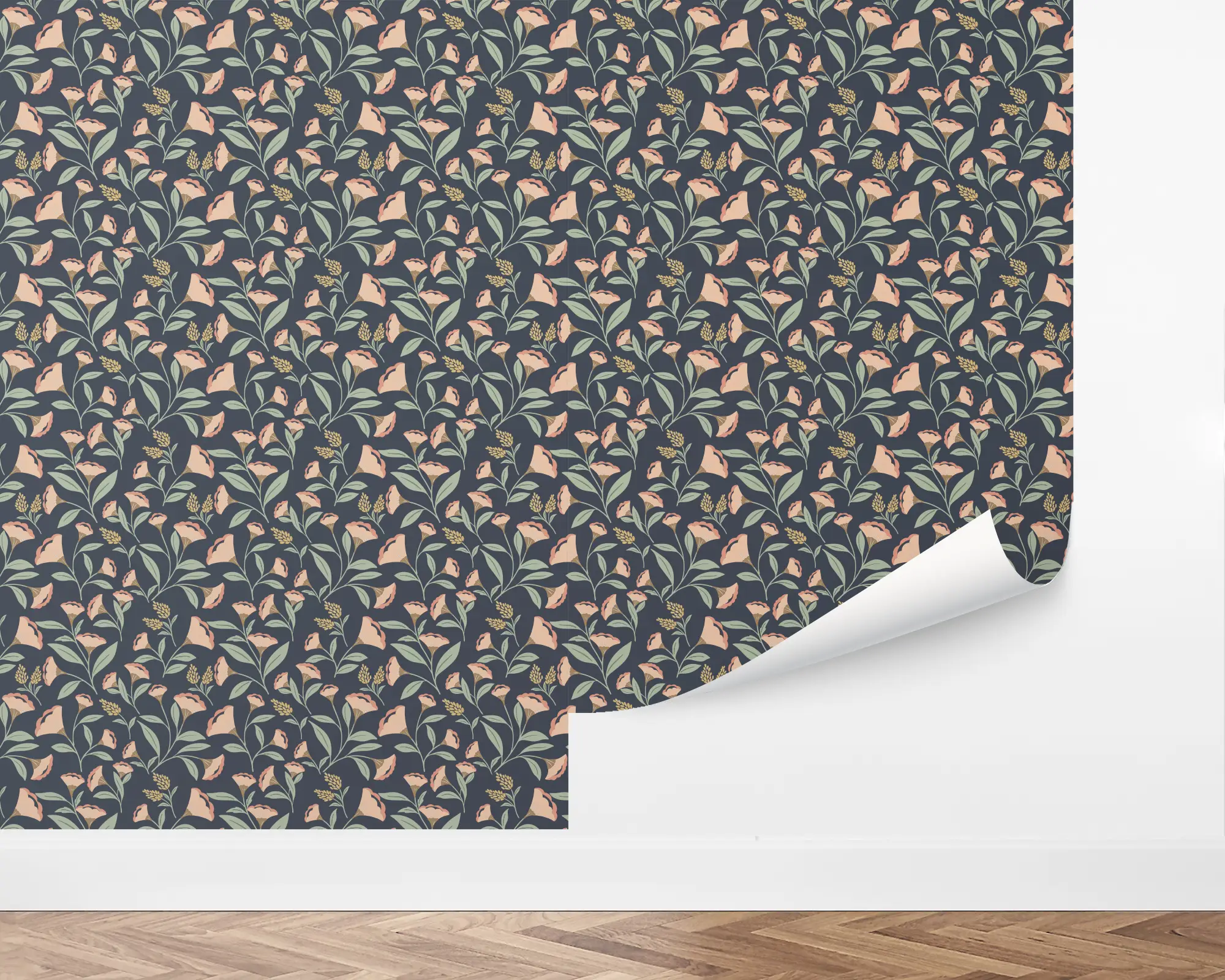 Create something beautifully charming with our Bellflower Boutique Peel and Stick Wallpaper. This playful design features tangled vines of bellflowers over a dark background. Colorful and energetic, this wallpaper is the perfect way to breathe some life into your interior design.