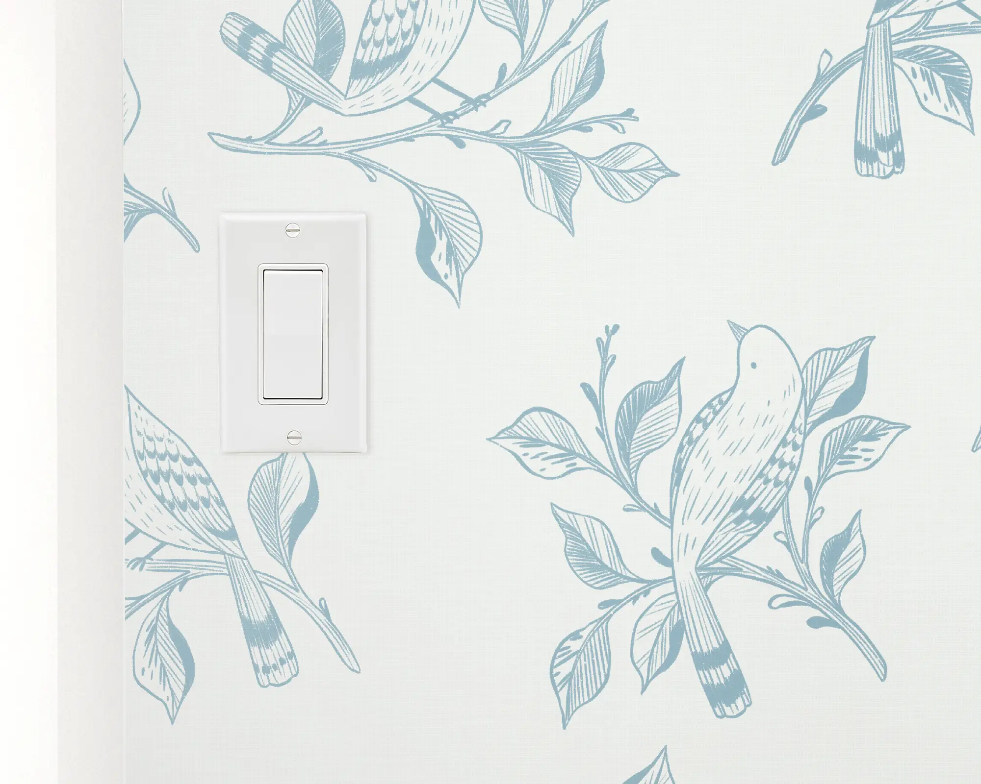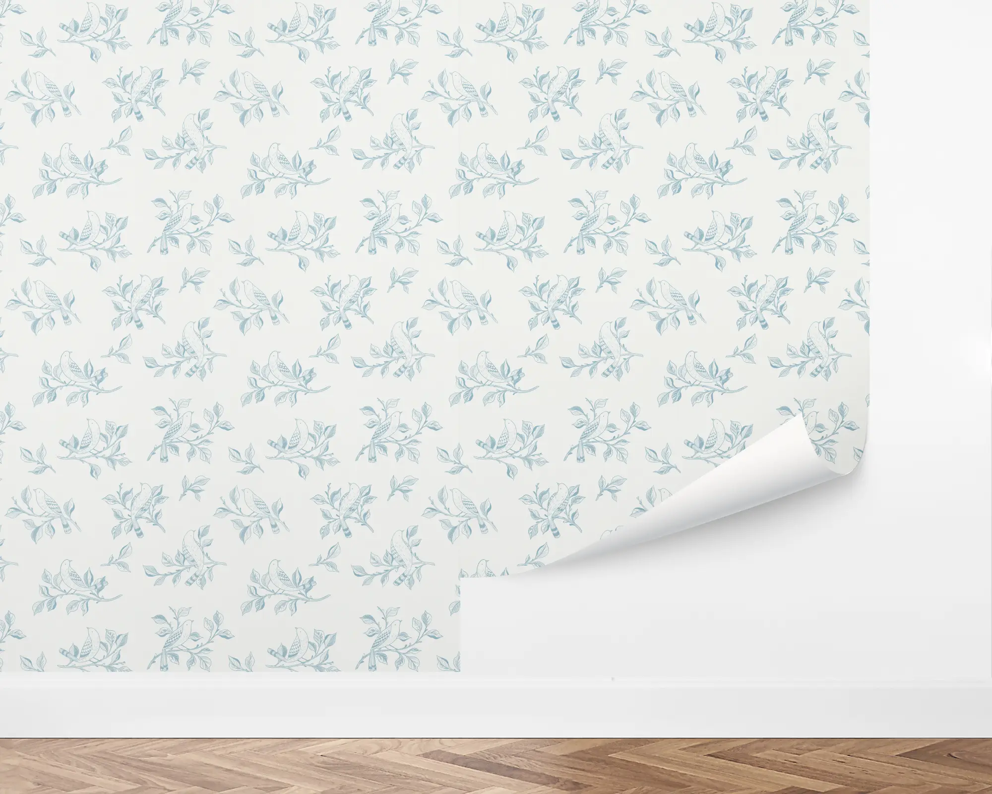 With its toile inspired pattern of branches and birds, our Bird Toile Peel And Stick Removable Wallpaper adds a sweet touch to any wall. Perfect for your child’s bedroom or nursery, this customizable wallpaper features delicately detailed illustrations of stylized birds in soft blue, patterned across an off-white ceramic background. Choose from hundreds of possible colors to personalize the wallpaper and create a one-of-a-kind pattern that perfectly suits your space!