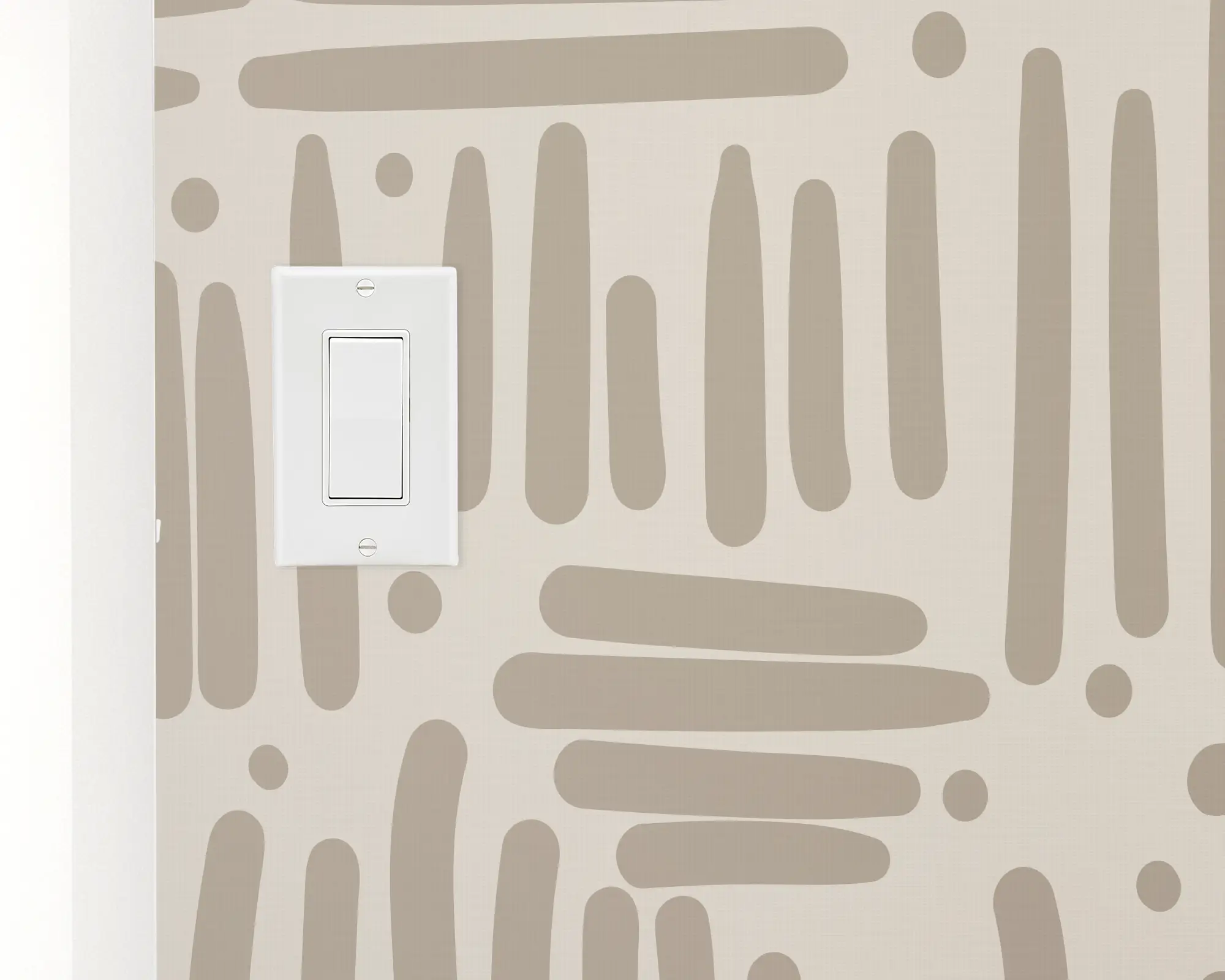 Create the perfect feeling in your home with our Bold Stacks Wallpaper. This design features a playful arrangement of thick lines and dots over a neutral background. Fully customizable with any of our colors, this design is the perfect way to renovate any space.