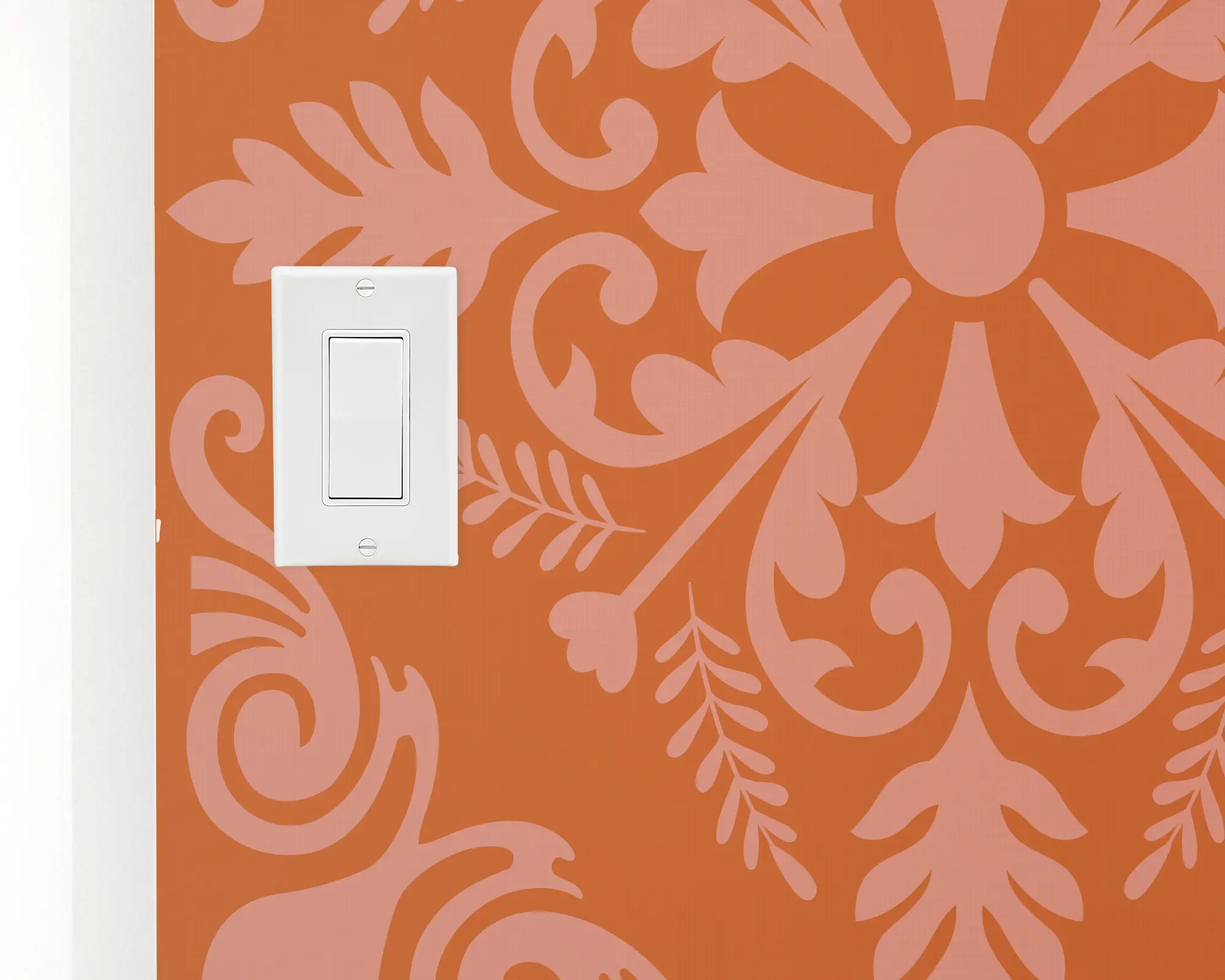 Our elegant Bronze Florentine peel and stick removable wallpaper will truly make an impression on all your guests! This orange design lays out into a pattern of swirling diamonds.