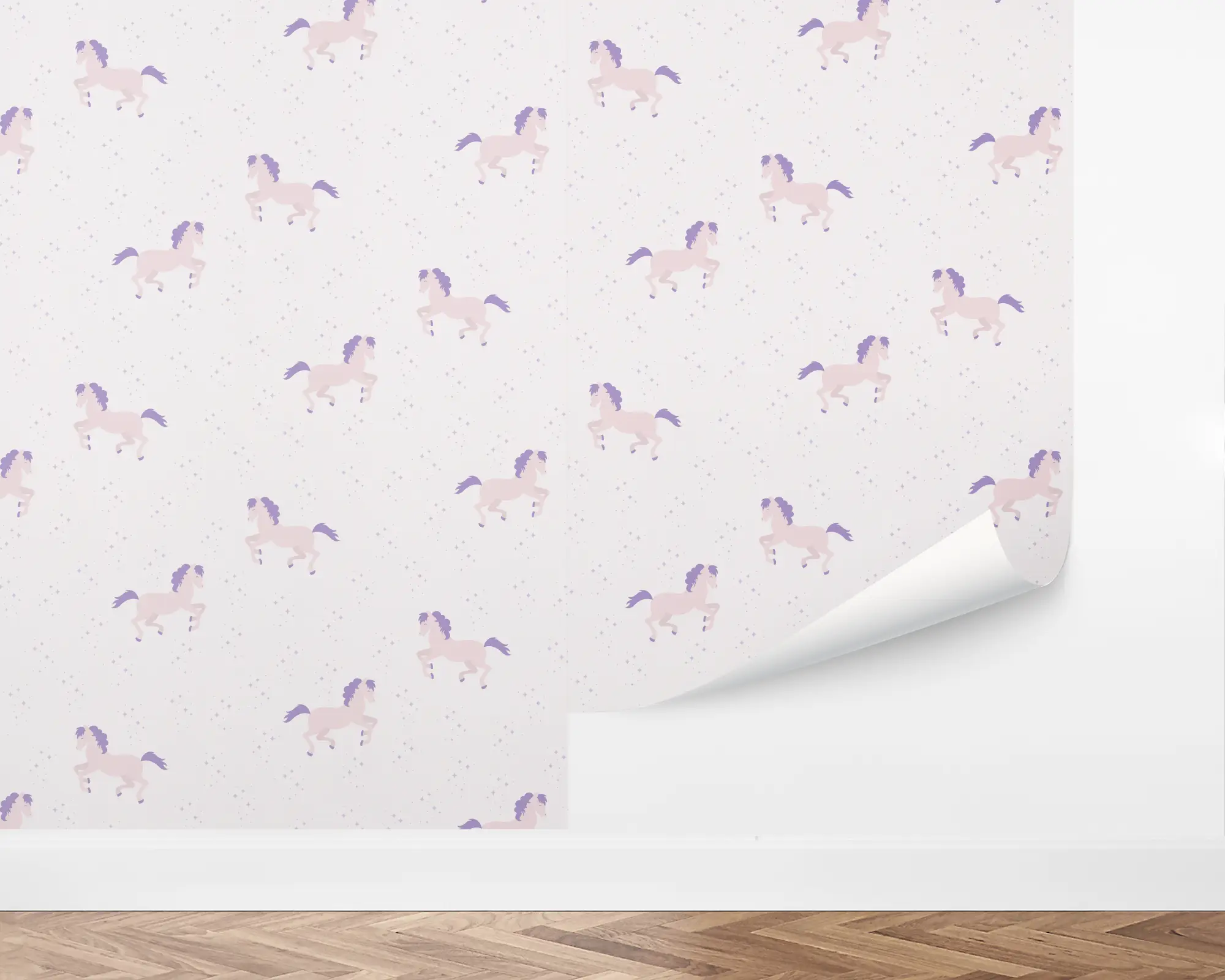 Add a fun design to your child's bedroom or playroom with our Colorful Pony Peel And Stick Removable Wallpaper. Cute illustrations of colorful ponies frolic among sparkles on a light-pink background. Choose from hundreds of color combinations to match your interior style!