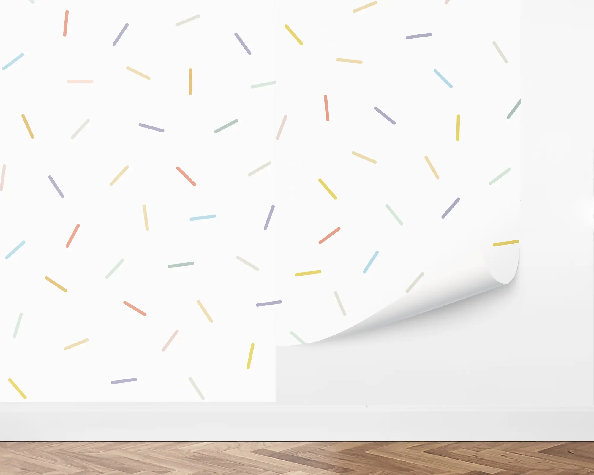 Bring your kitchen, child's room, or even bakery into a sugary wonderland with our Cupcake Sprinkles Peel And Stick Removable Wallpaper! In this design, large multicolored sprinkles are spilled over a clear, white backdrop.
