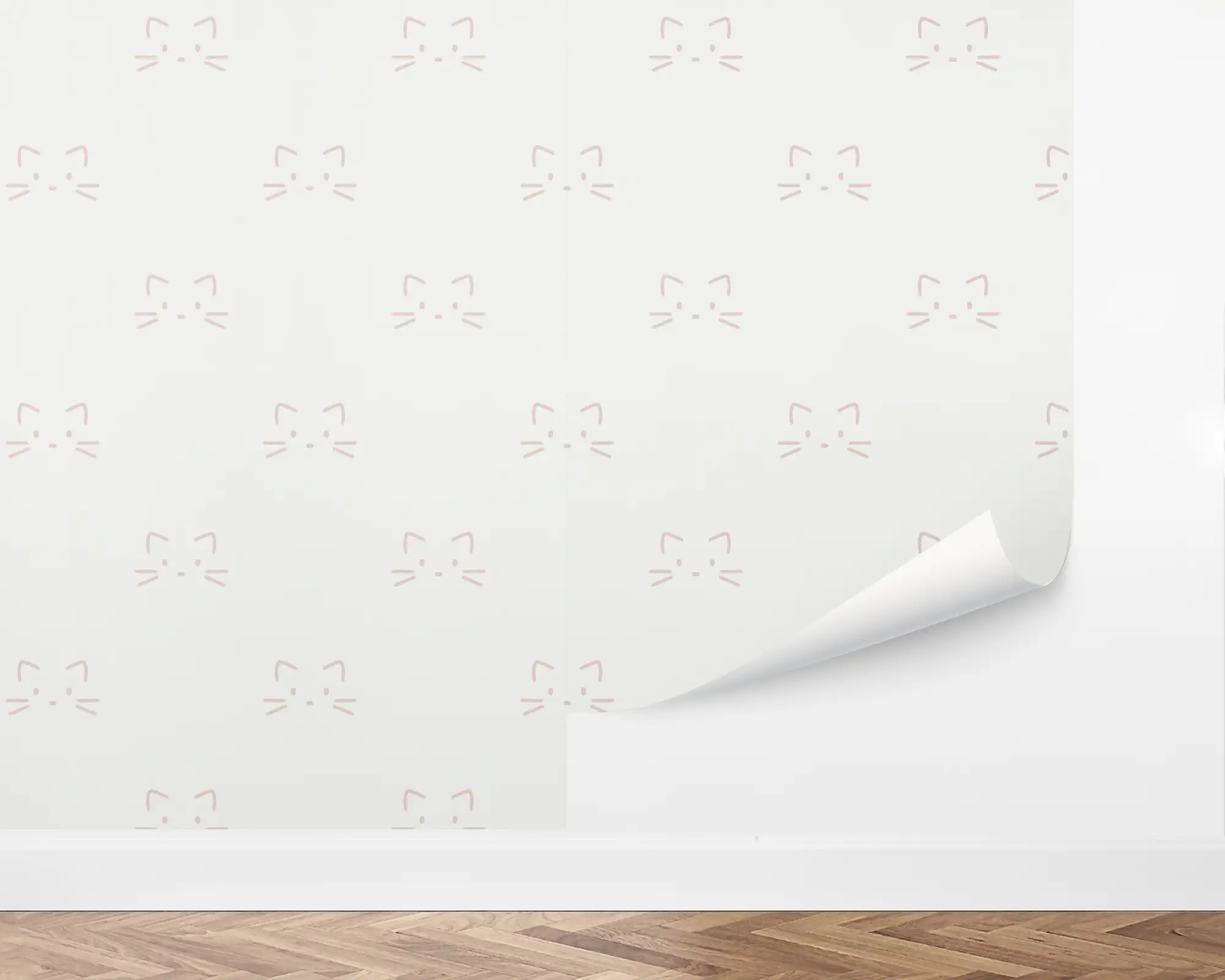 Create the playroom or nursery of your dreams with our Cute Kitty Peel and Stick Wallpaper. This adorable design features simple, minimalist kitten faces drawn over a light background. Fully customizable with any of our colors, this wallpaper is perfect for any of your little ones.