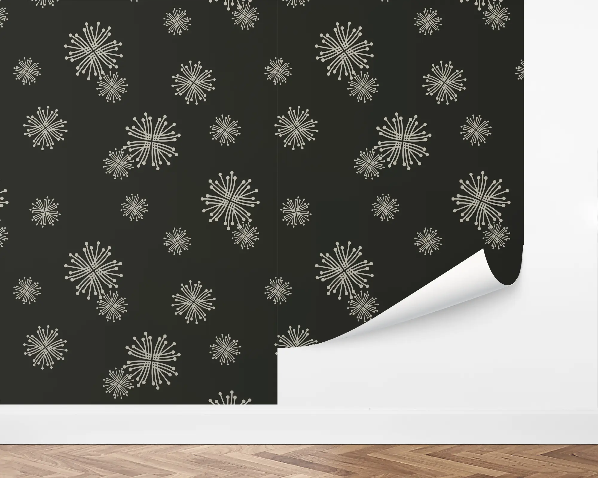 Add a touch of retro class to your space with our Dancing Dandelion Peel And Stick Removable Wallpaper. This stylish wallpaper features a scattering of symmetrical emblems resembling dandelion fluff or snowflakes. Fully customizable with any of our colors, this design is a perfectly unique way to decorate any room.