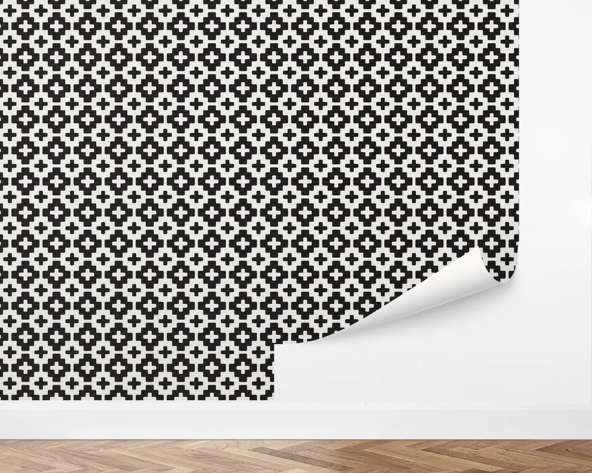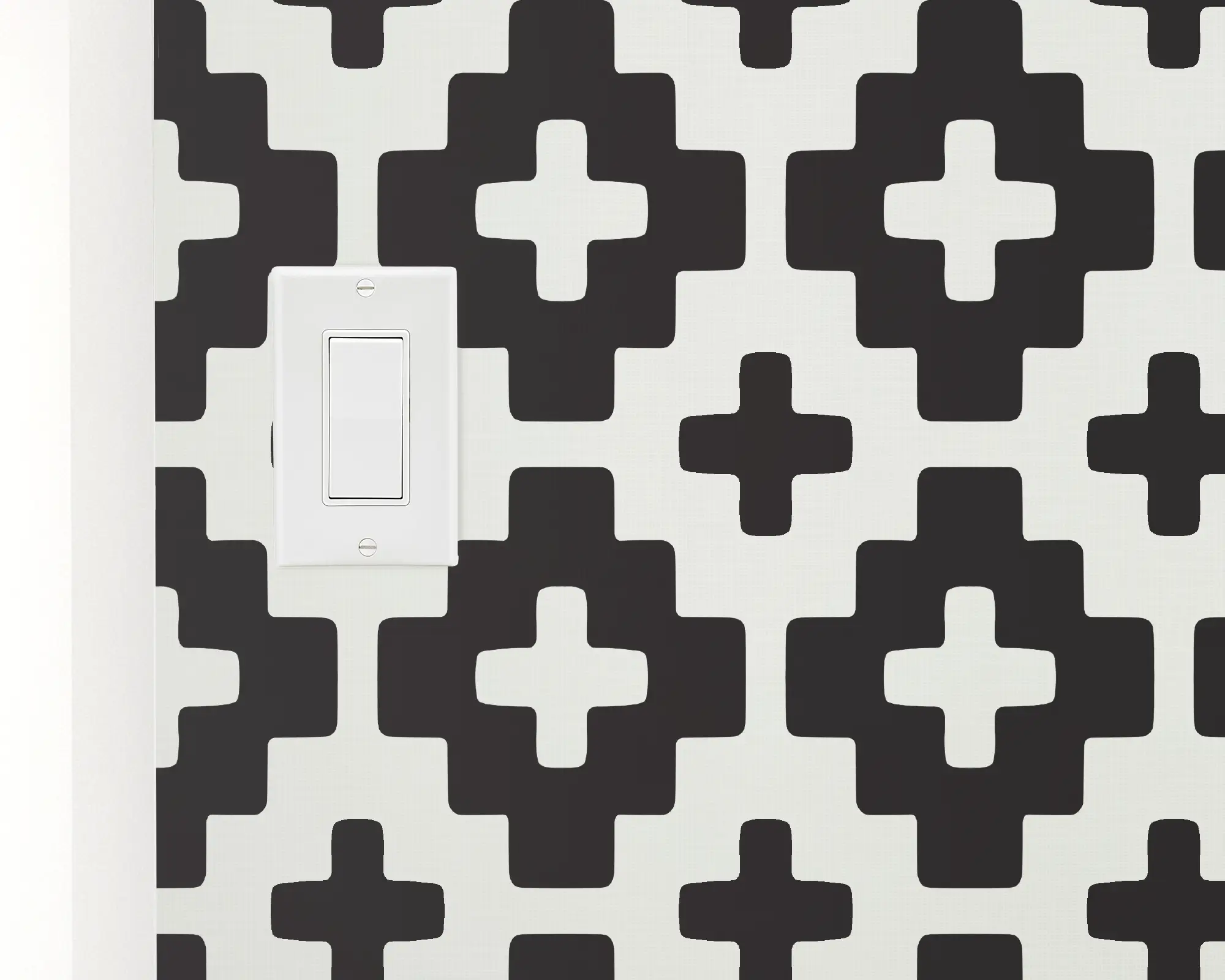 A classic geometric tile pattern, our Dense Cross Tiles Peel and Stick Removable Wallpaper is a welcome addition to any room in your home. The densely packed cross shapes in black and off-white Cotton could suit any space, or change all the colors for a fully customized design. With hundreds of colors to chose from, you can create a truly custom wallpaper that perfectly suits your style!