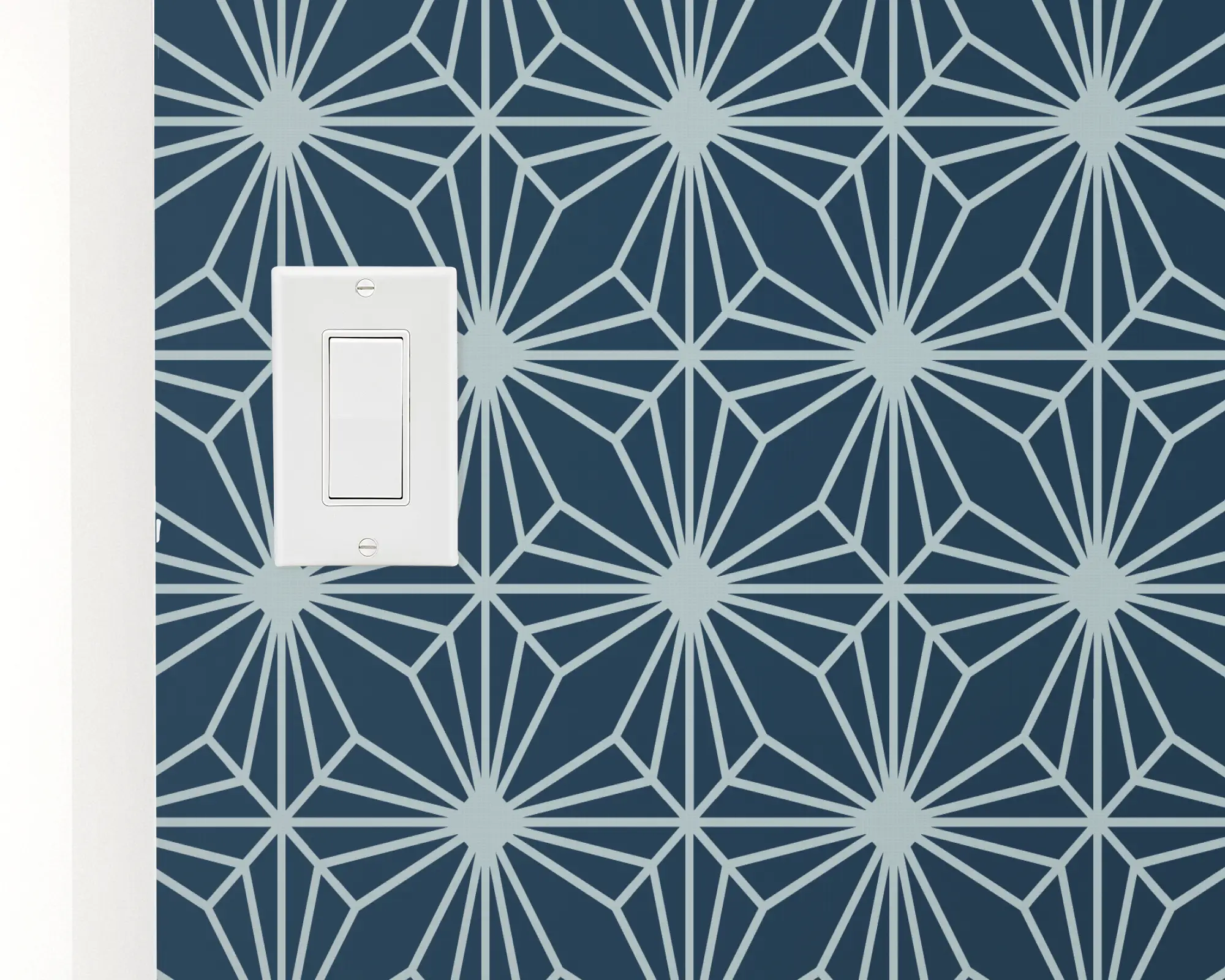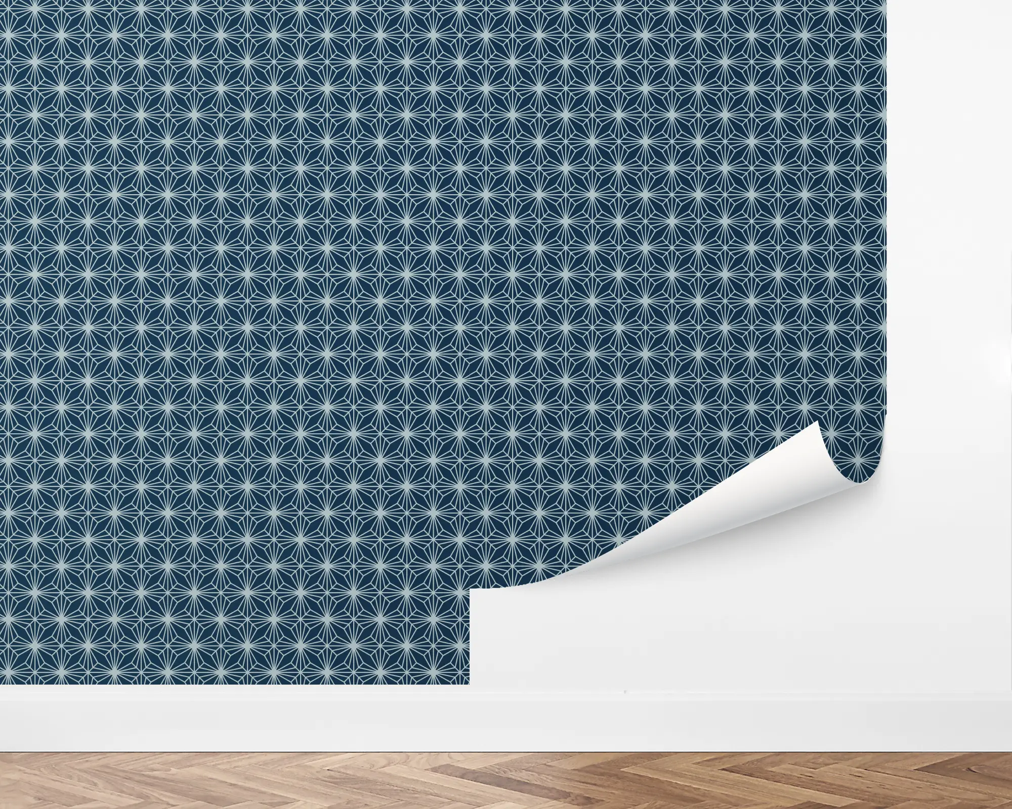 Add a sophisticated touch with our Diamond Flowers peel and stick removable wallpaper. This design features a stunning art deco pattern of diamonds in flower-like shapes repeated over a navy background. Fully customizable with any of our colors, this wallpaper is perfect for your next interior redesign project.