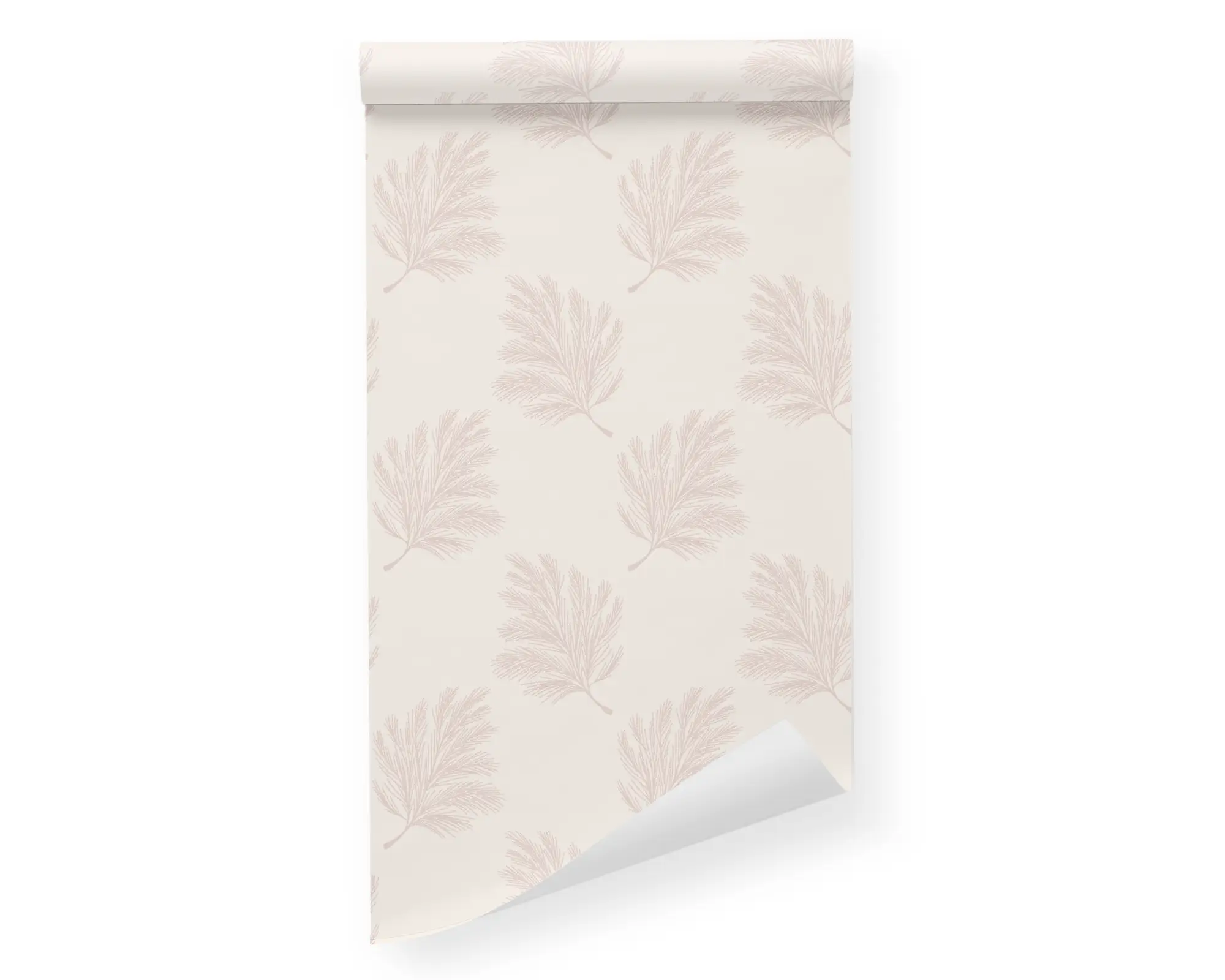 Dusty-pink illustrations of foliage fall on top of an ivory background making our Evergreen Block peel and stick removable wallpaper a favorite for elegant bedroom setting or living room. Choose from endless color combinations to fit your personal style!