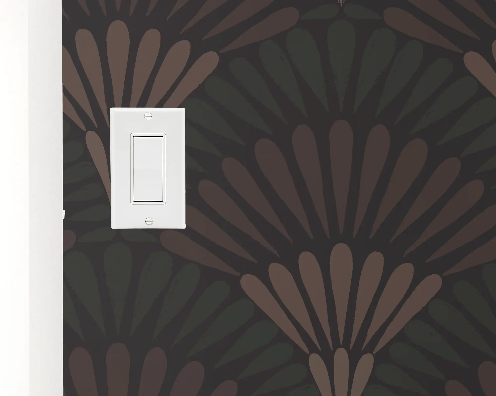 Bring a moody vintage vibe to any wall in your home with our Feathery Layered Scallops Peel And Stick Removable Wallpaper. A dark peacock feather design creates a scalloped arch design on a black background. Personalize with endless combinations of colors to match your interior style perfectly!