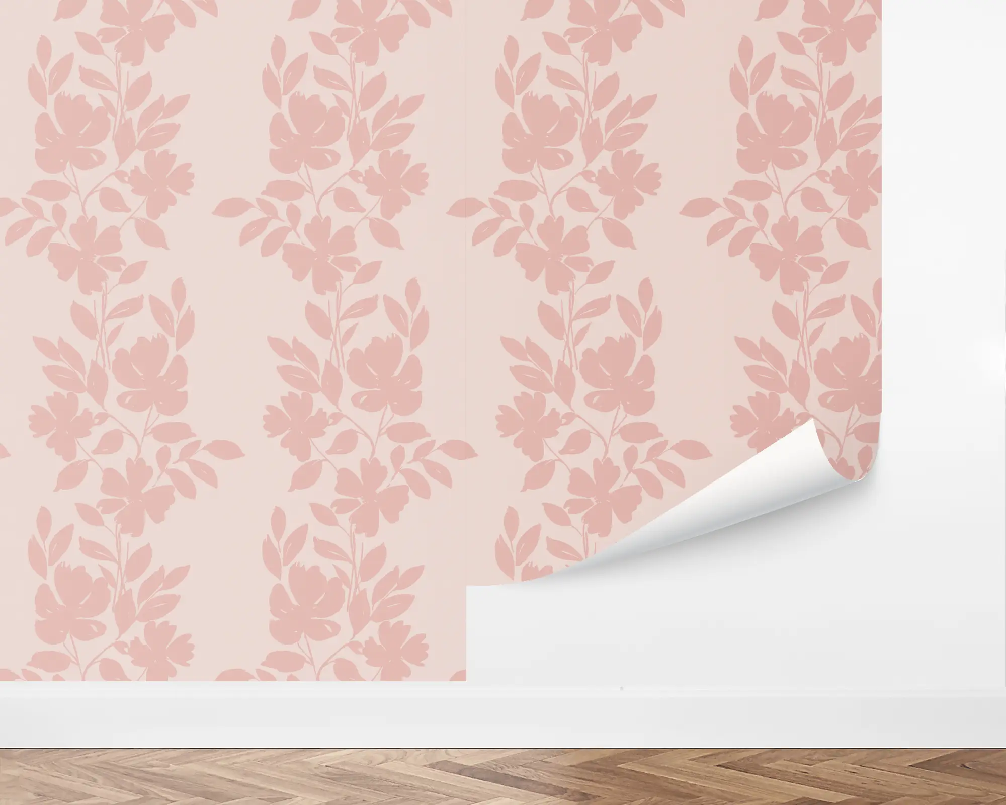 The Floral Lines Peel And Stick Removable Wallpaper is classic floral design that will add a vintage feel to your home! This feminine botanical pattern features dark pink flowers vertically striped on a lighter pink background. Customize this design to be perfect for your home with our variety of color options online!