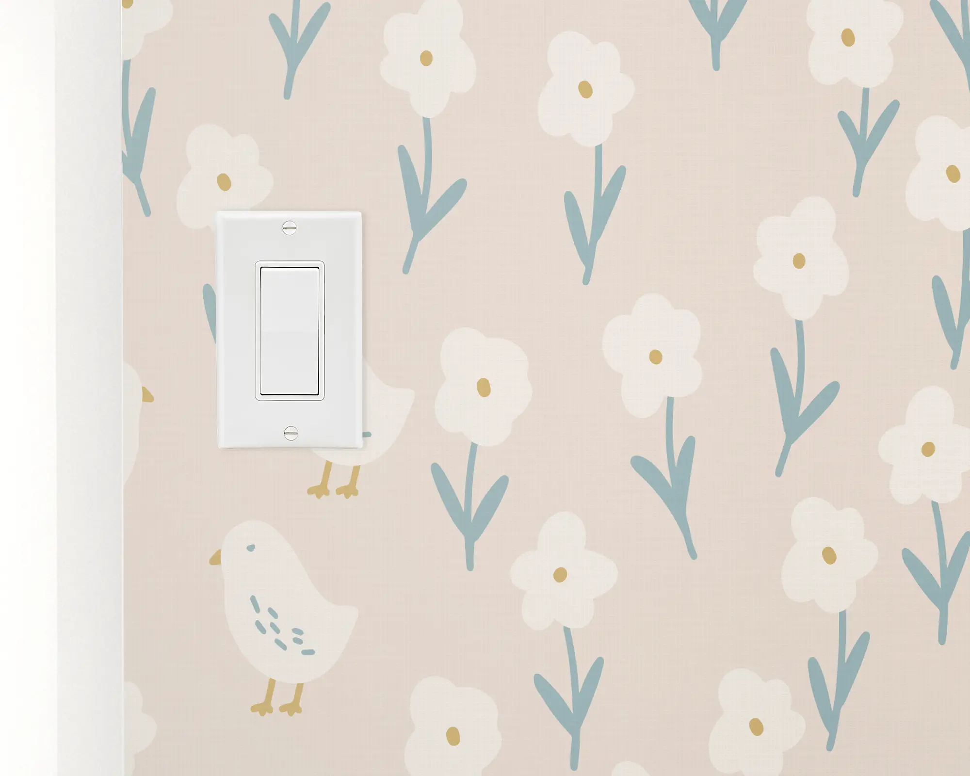 Create a rustic statement on any wall in your home with our Flower Chicks Peel and Stick Wallpaper. Illustrations of baby chickens and flowers are printed on top of a powder pink background. Personalize with different color combinations to be perfect!
