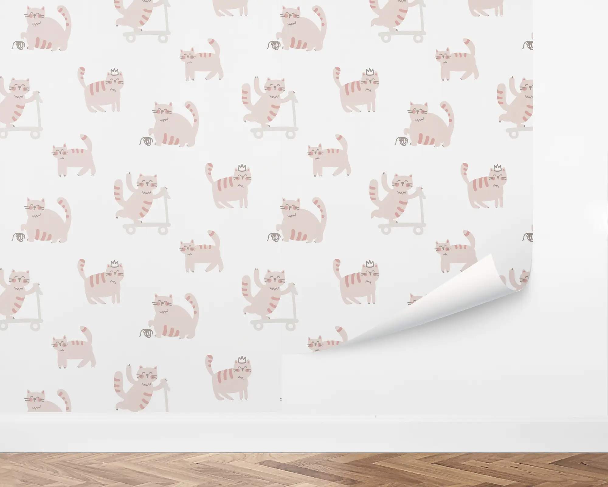 Design the purrfect room for your child with our Fun Kittens Peel And Stick Removable Wallpaper. Playful illustrations of cats are found doing various activities across the white background. With endless color combinations to choose from, this is sure to create the room of your child's dreams.