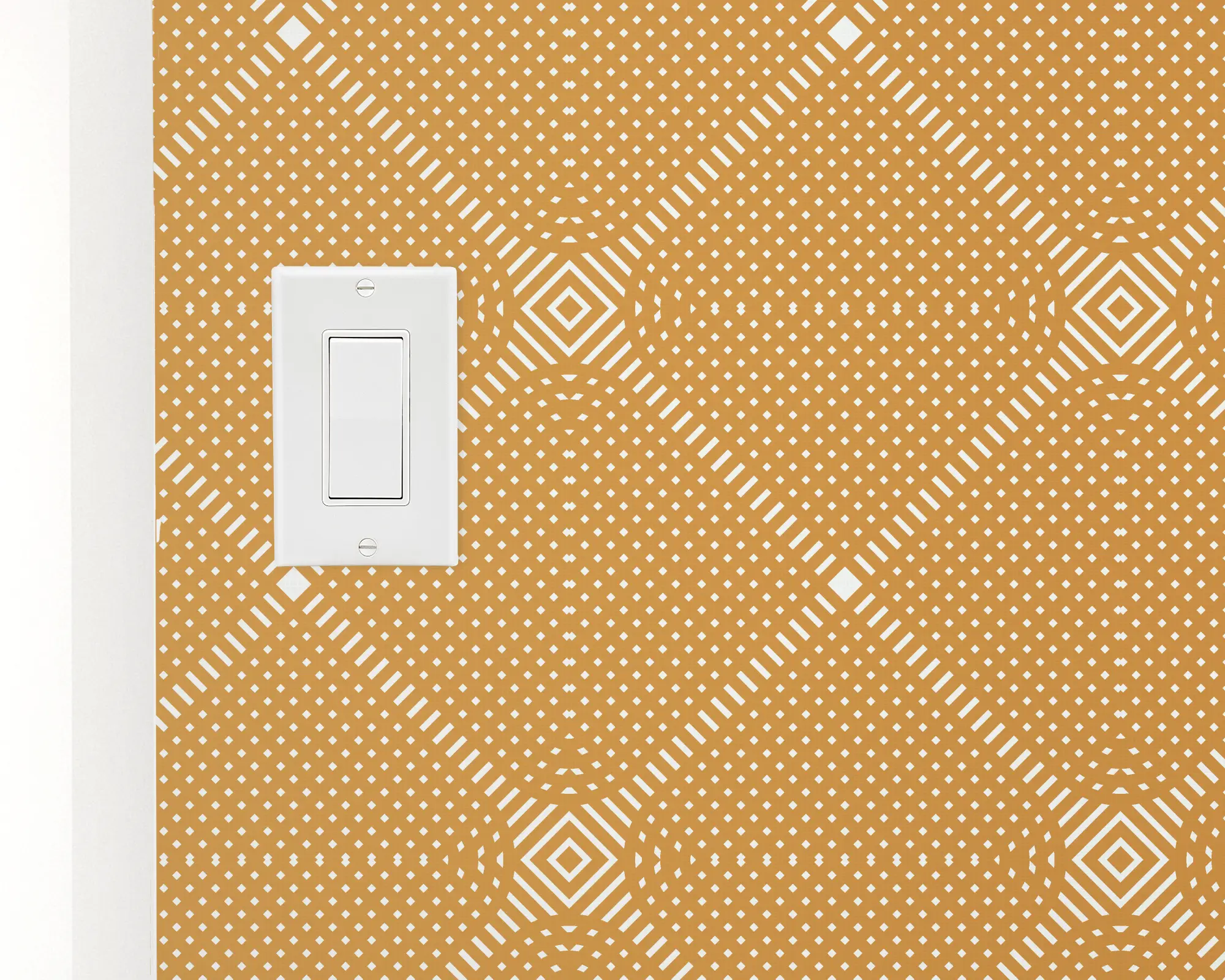 Add a mesmerizing retro vibe to any wall in your home with our Geometric Weavings Peel And Stick Removable Wallpaper. Burnt illustrations of diamonds are woven together onto a ceramic background, creating a wicker pattern. Customize with endless combinations of colors to match your style perfectly!