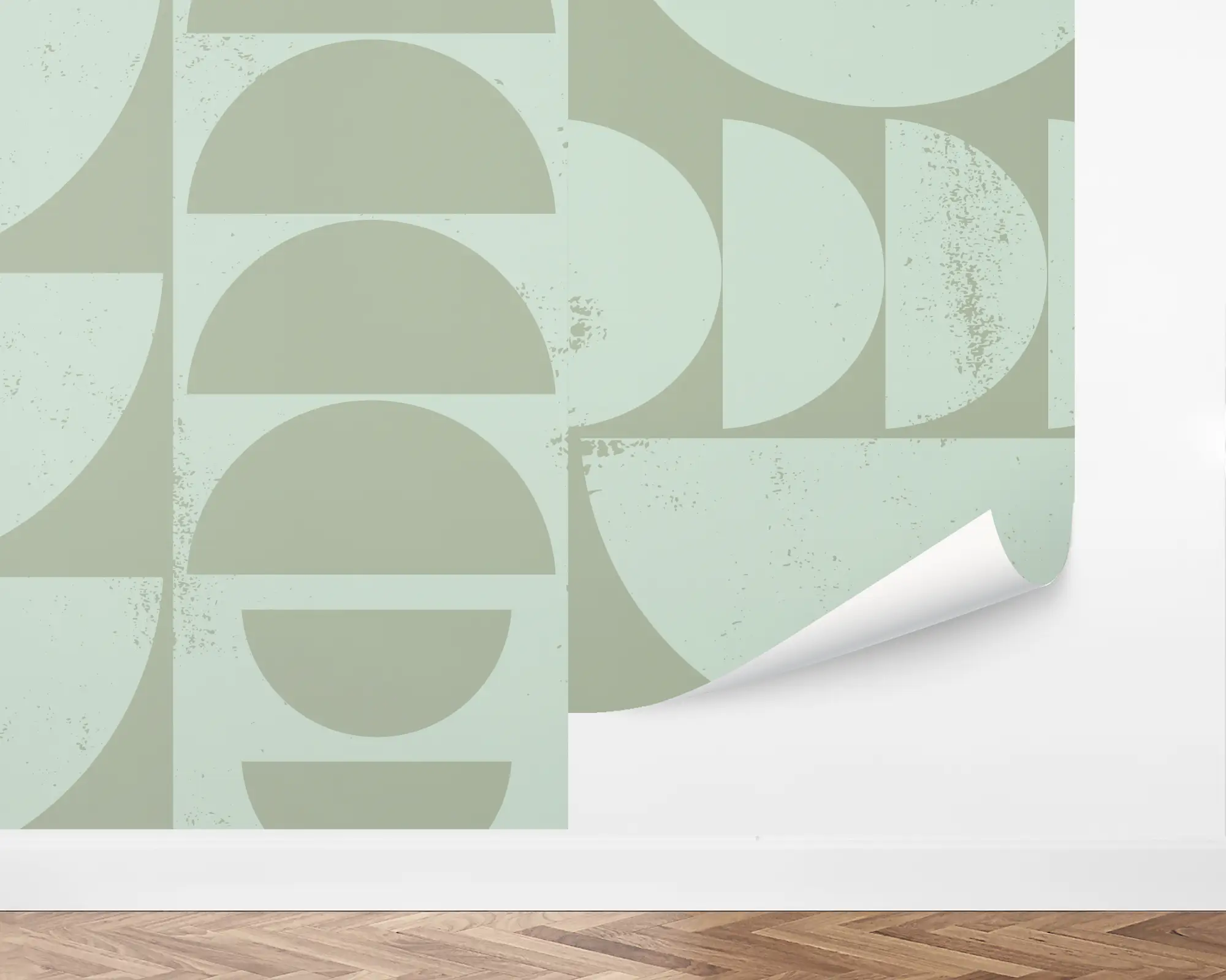 Our Half Circle Laurel Peel and Stick Wallpaper are sure to create an eye-catching statement on any wall. Distressed aloe illustrations of semi-circles are stamped on top of a fir background. Customize with endless color combinations to be perfect in any room in your home!