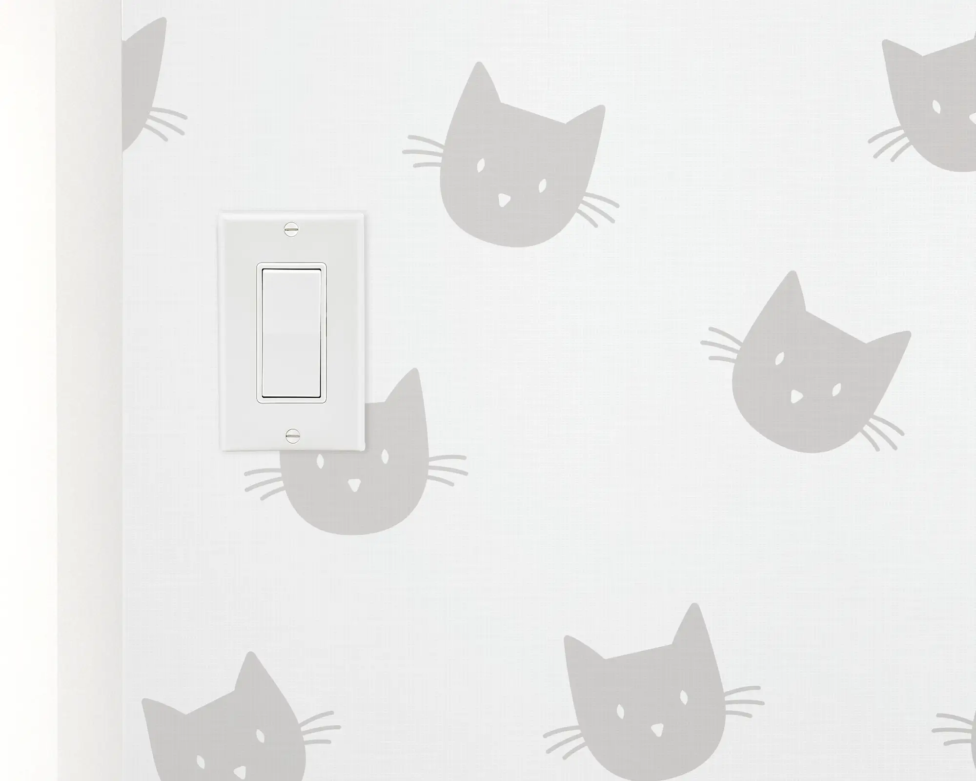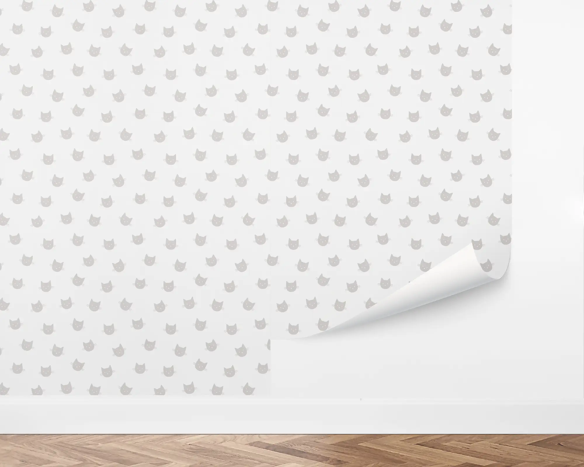 Add the purrfect touch to your child's room with our Kittie Dots Peel And Stick Removable Wallpaper. Cute illustrations of grey cats are spotted all over the white background. With endless combinations of colors to customize with, this is sure to match all your wants and needs!