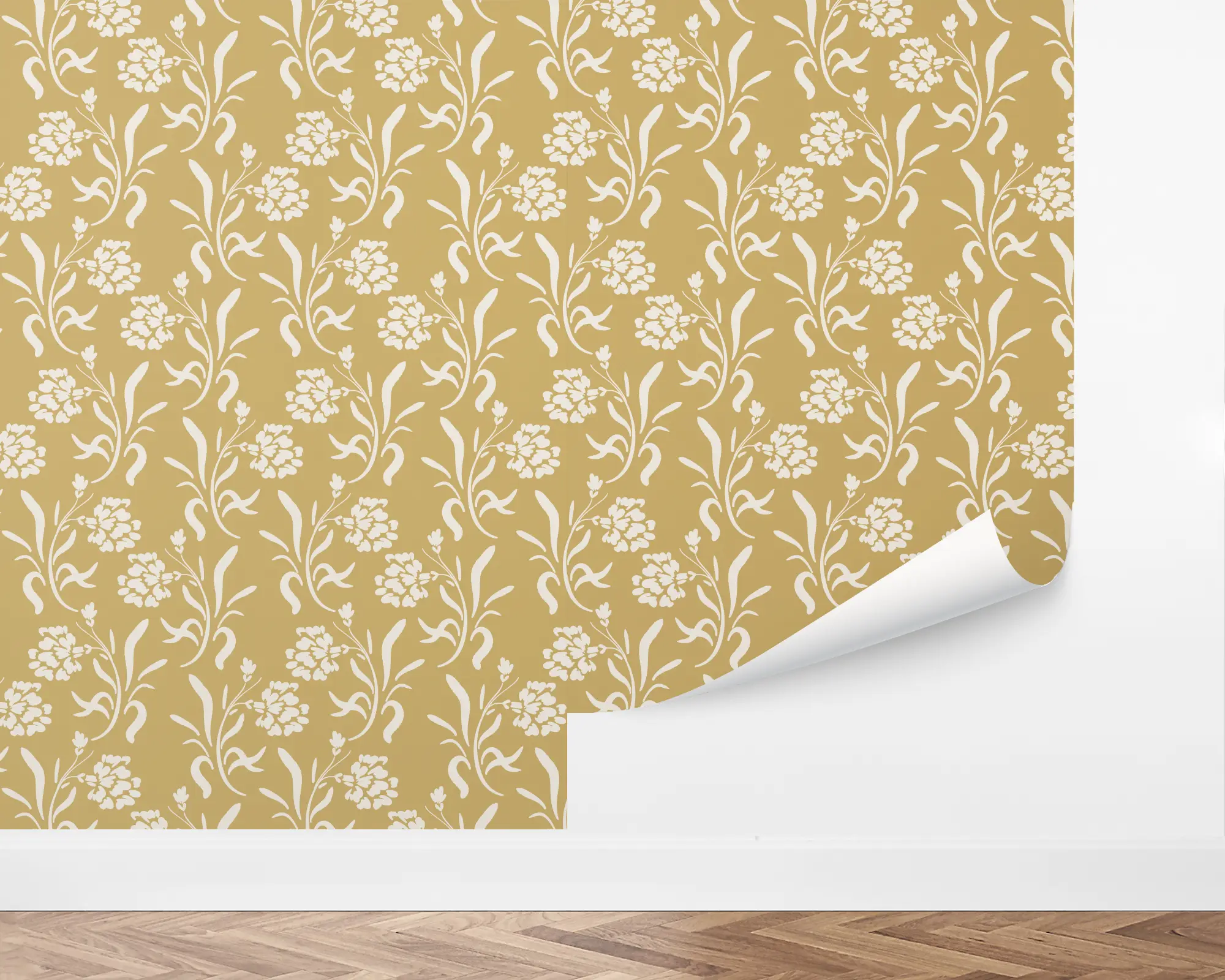 Our Leafy Luxe Peel And Stick Removable Wallpaper infuses any wall in your home with the serene charm of nature. Ivory illustrations of simple botanicals are stamped on a faux gold background. Customize with endless color combinations to match your room's style perfectly!