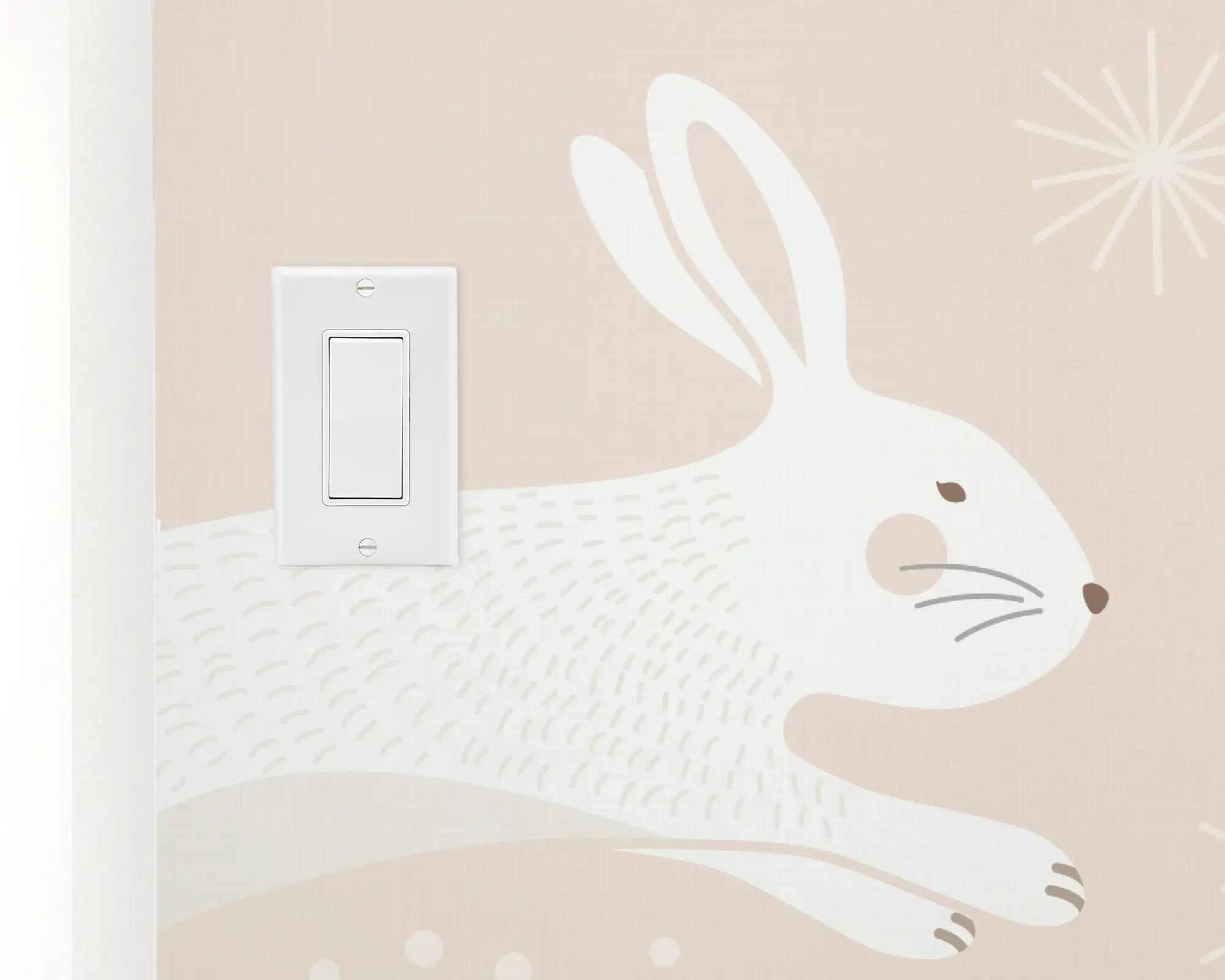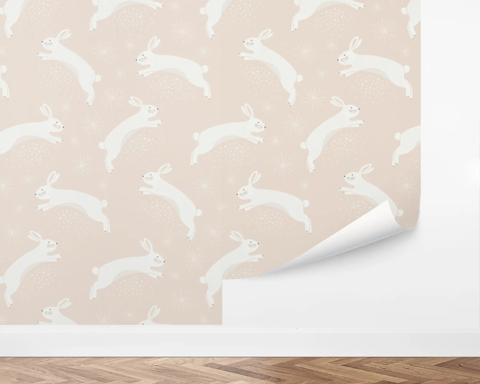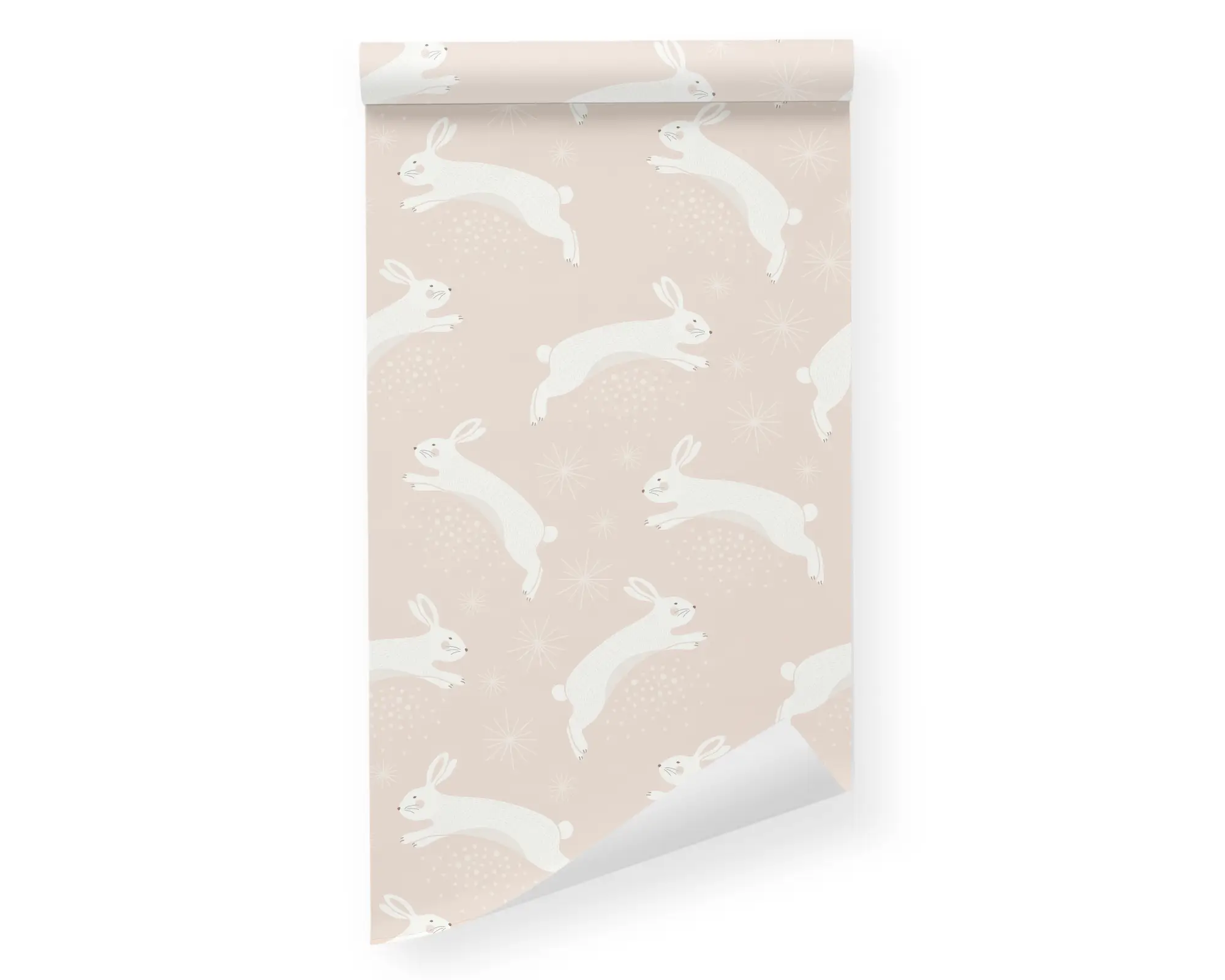Hop along and create a perfectly playful space for your kids with our Leaping Bunnies peel and stick removable wallpaper. This design features friendly, fluffy rabbits bounding across a pink background, adorned with light sparkles and dots. Fully customizable with any of our beautiful colors, this wallpaper is just what your child's room needs.