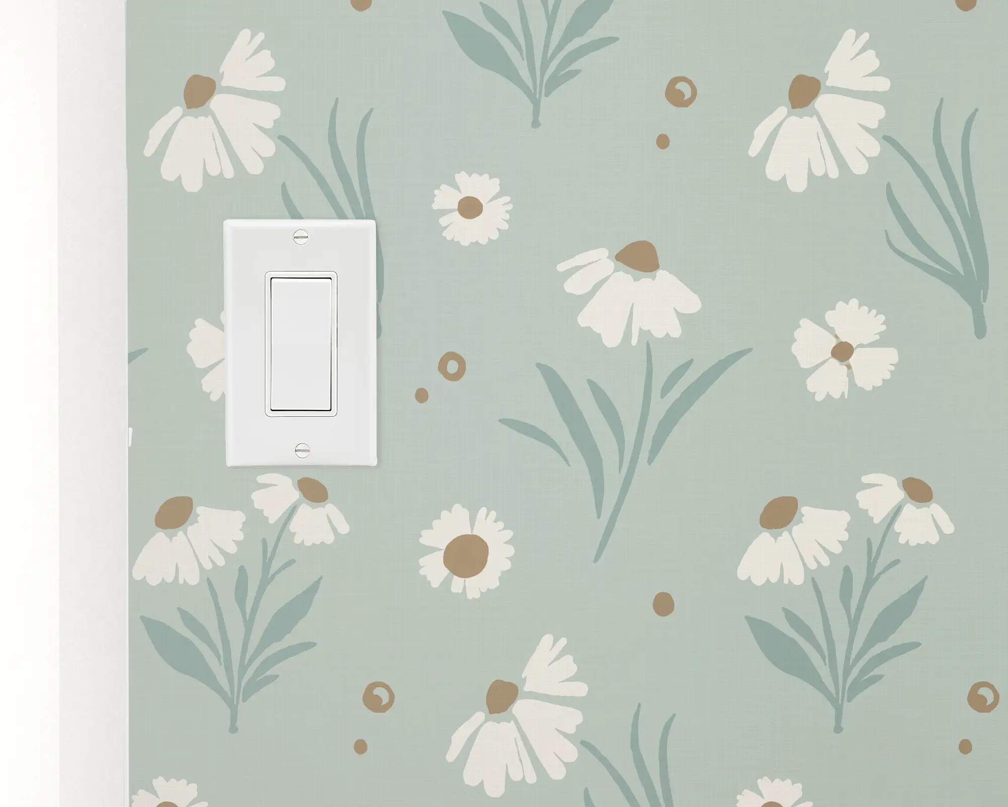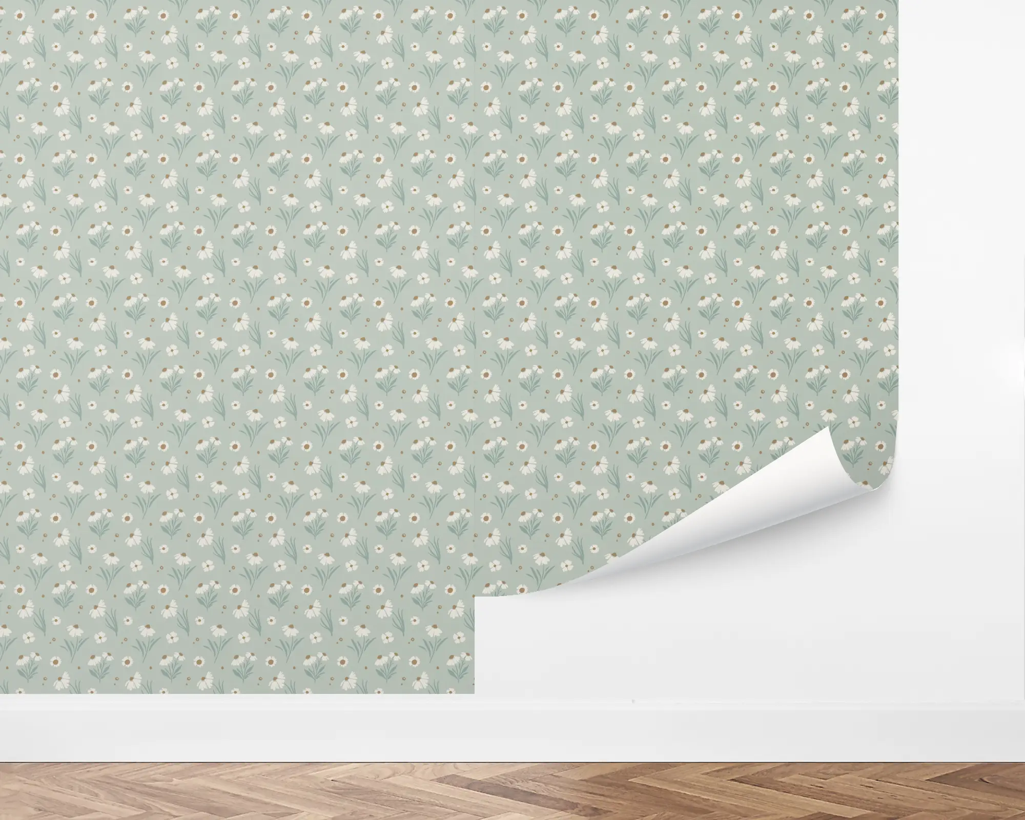 Bring the feel of an open meadow to any room in your home with our Little Daisies peel and stick removable wallpaper. Cute illustrations of small flowers sprout on top of the fauna-green background. Choose from endless color combinations to be perfect!