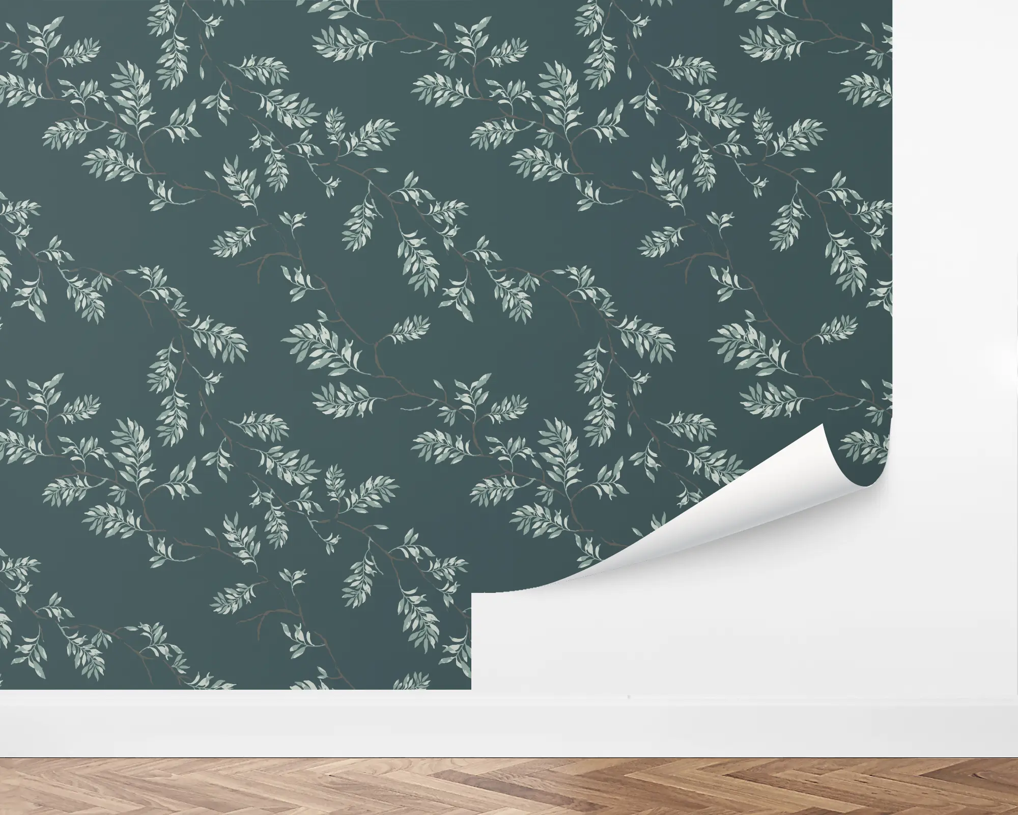 With its thin branches and two-tone foliage, our Luxury Vines Peel and Stick Removable Wallpaper is a great way to add a botanical touch to any room. The delicate, hand drawn vines trail across a dark Tidal teal background in soft greens and gray that could suit any space, or change all the colors for a fully customized design. With hundreds of colors to chose from, you can create a truly custom wallpaper that perfectly suits your style!