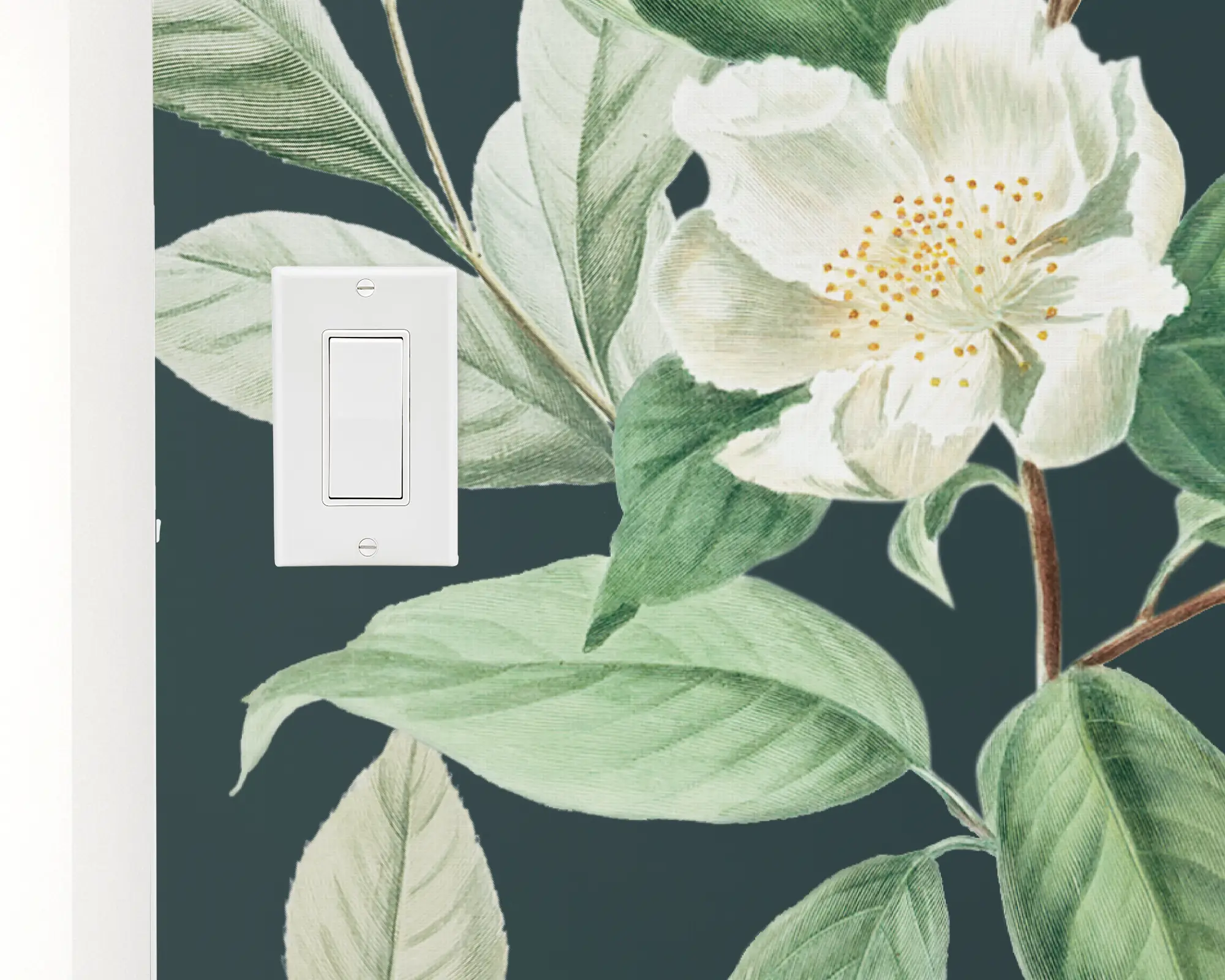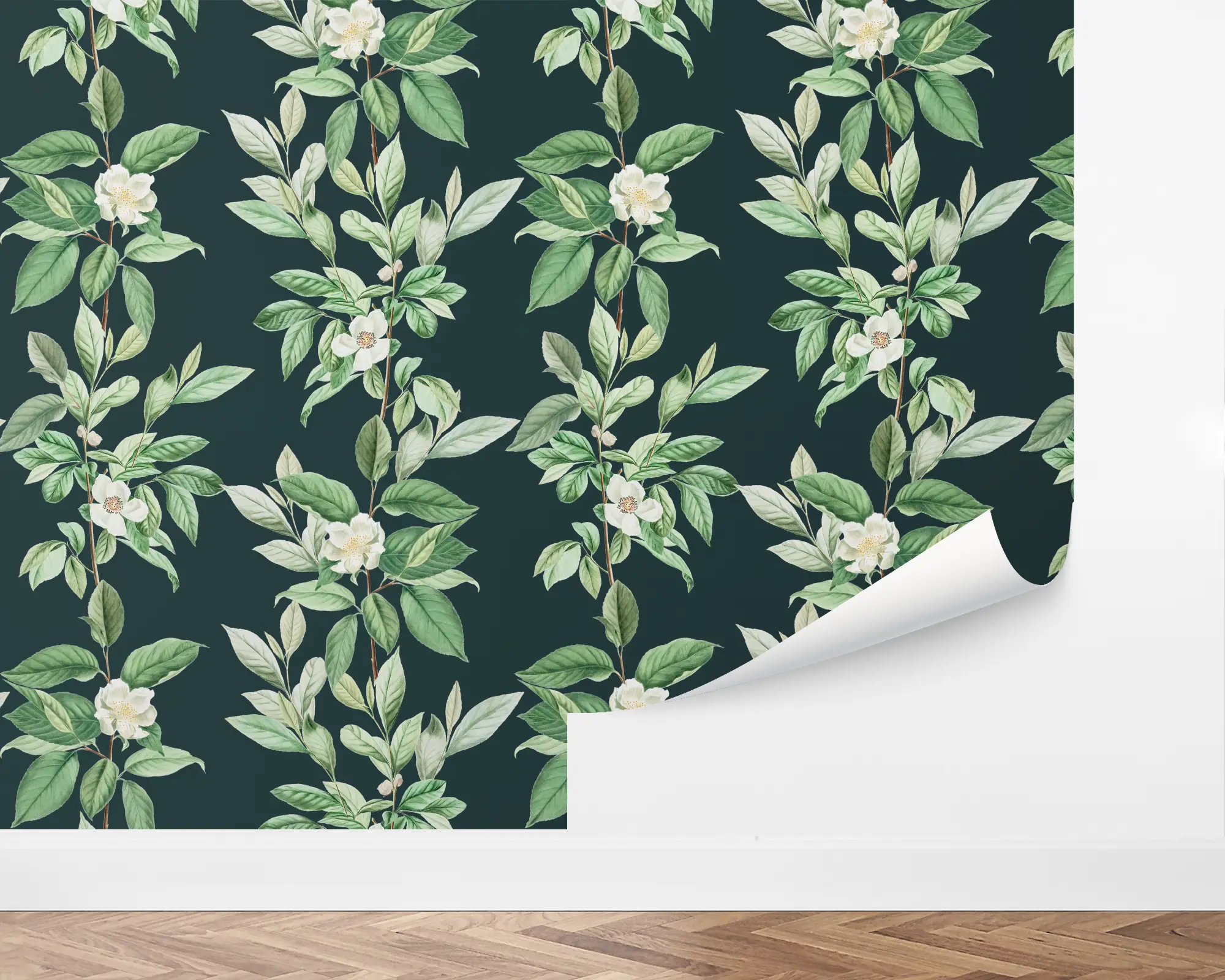 Our Magnolia Blooms Peel and Stick Wallpaper is sure to add a classic touch of nature to any wall in your home. Realistic illustrations of white florals and green foliage grow up in rows on a velvet background. Customize with endless combinations of colors to match your interior style perfectly!