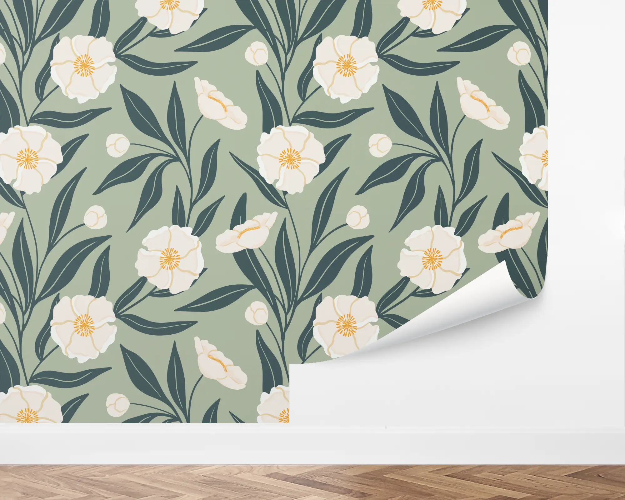"They have so many gorgeous patterns you can customize for your own space! I went with 'Vintage Peonies' in the colors shore & white and I'm sooooo happy with it!!"