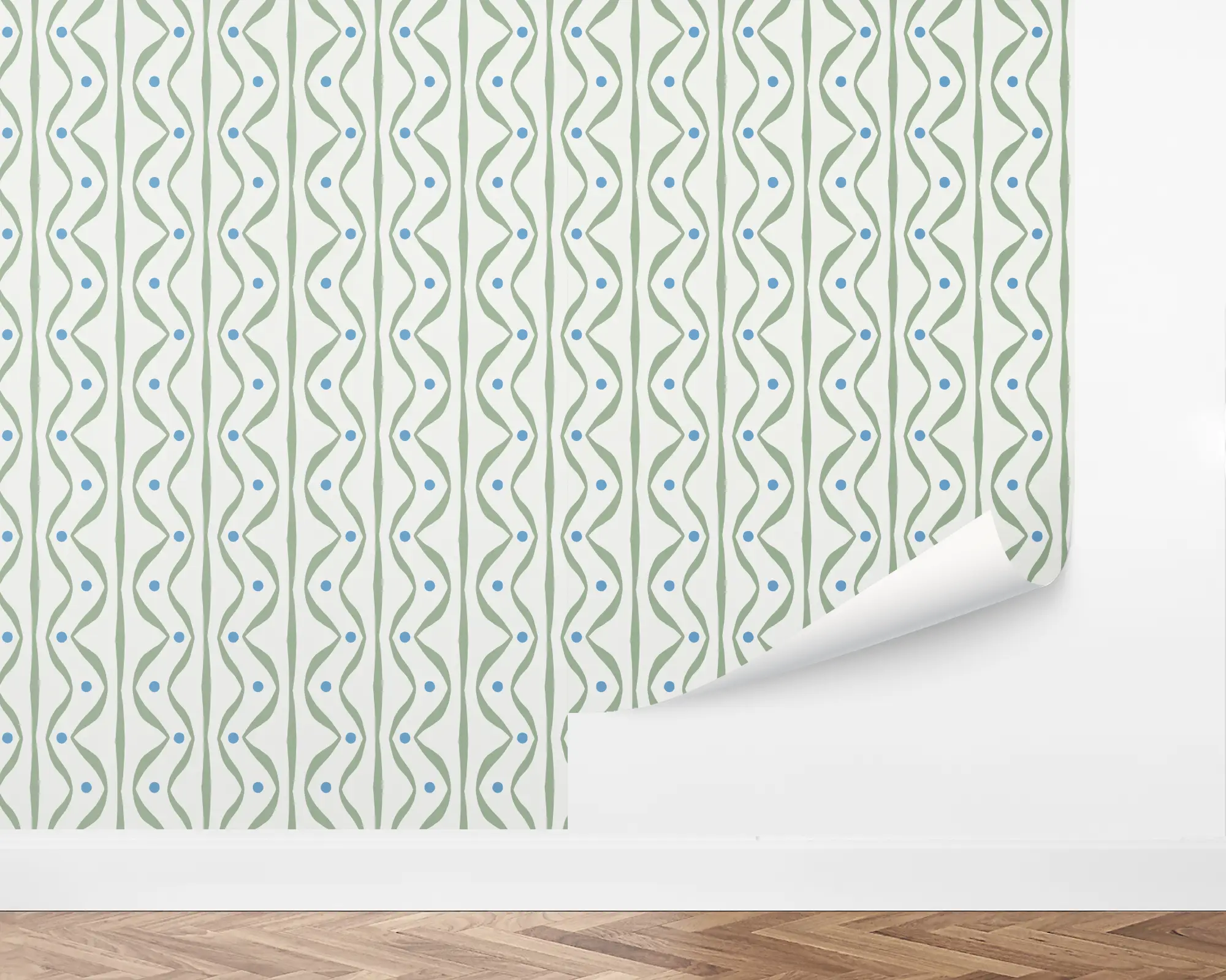Add a classic farmhouse touch to any wall in your home with our Modern Stripes Peel and Stick Wallpaper. Spring wavy stripes and carolina dots are placed on top of a ceramic background. Personalize with your favorite combinations of colors to match your interior style!