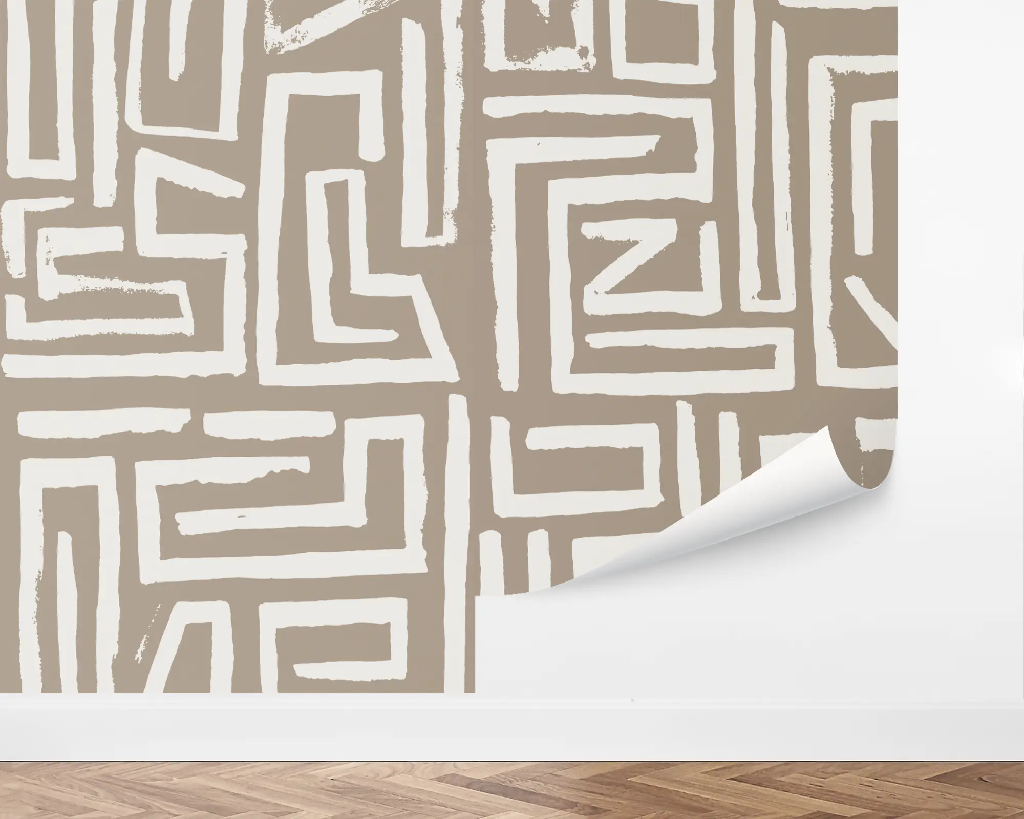 Bring something fun and exotic into your home with our Modern Tribe peel and stick removable wallpaper. This design features neutral tones, with bold lines drawn in exciting shapes and angles. Fully customizable with any of our colors, this wallpaper is the perfect way to bring some excitement to your life.