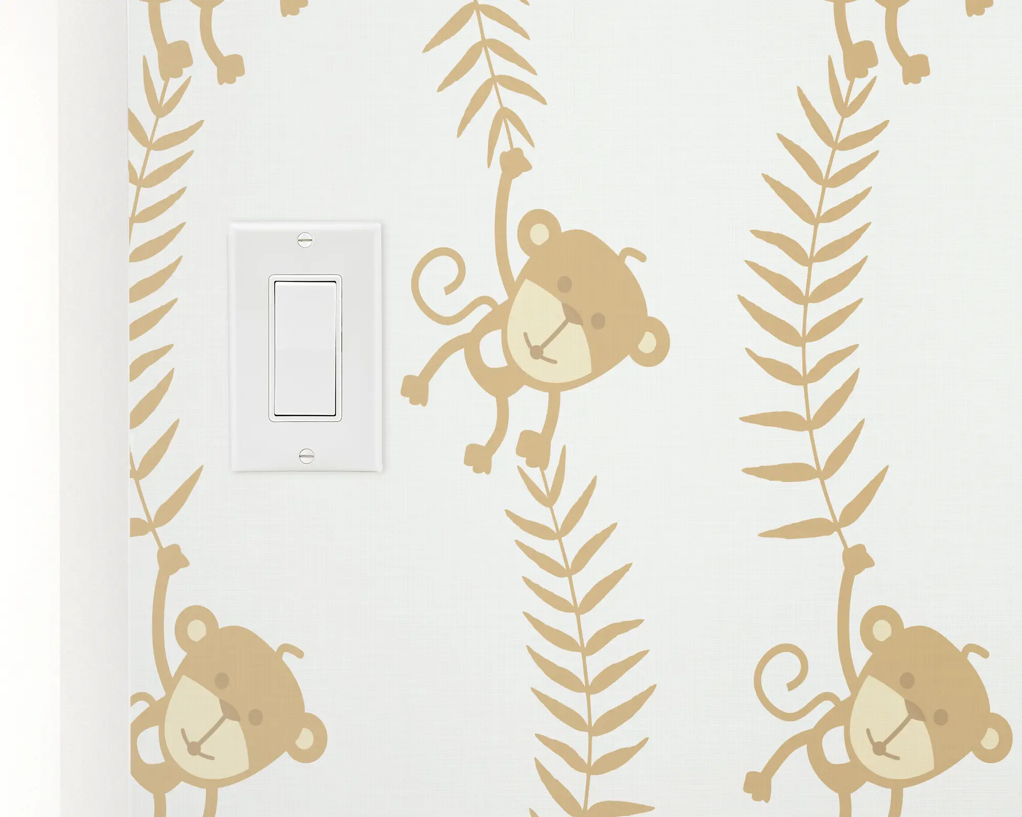 Add a cute, jungle-themed element to your child's walls with our Monkey Business Peel and Stick Wallpaper. Illustrations of monkeys swinging on botanicals are printed on top of a ceramic background. Customize with endless color combinations to match your child's interior style!