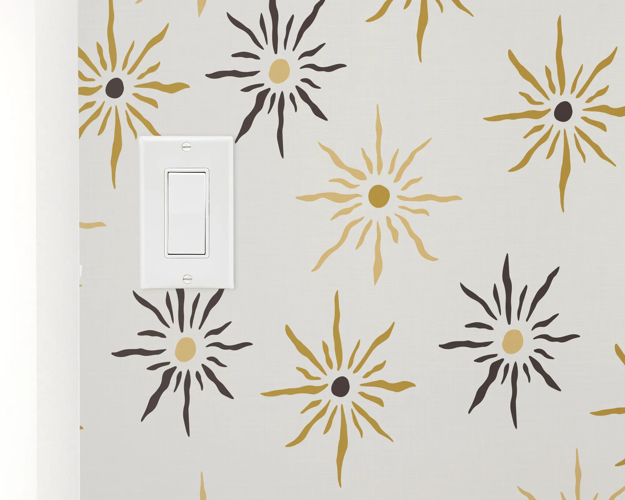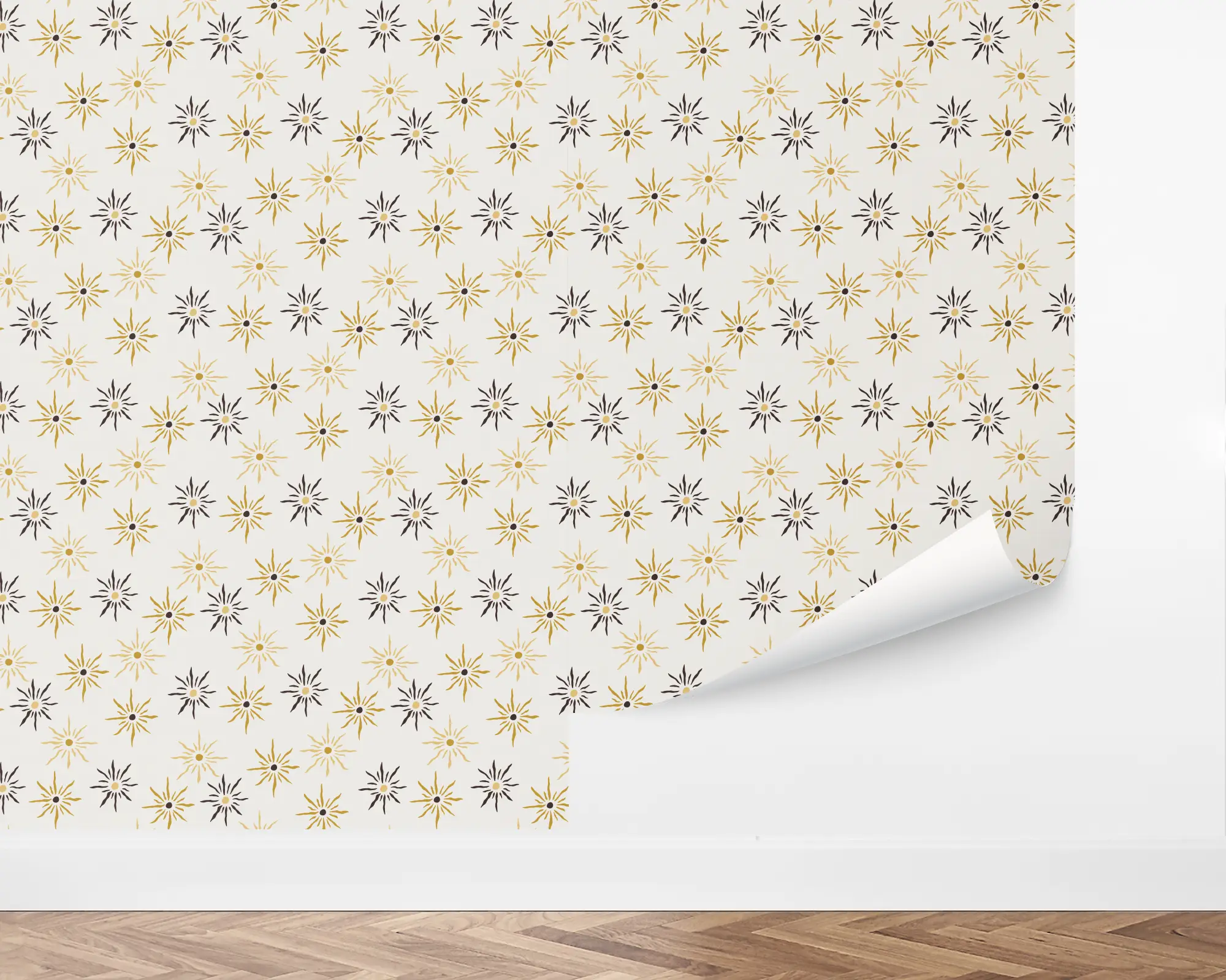 The classic look of our Mystical Suns Peel And Stick Removable Wallpaper is sure to make a statement on any wall in your home. Multi-colored suns shine brightly against the neutral-toned background. Personalize these cards with different color combinations to match your interior style!