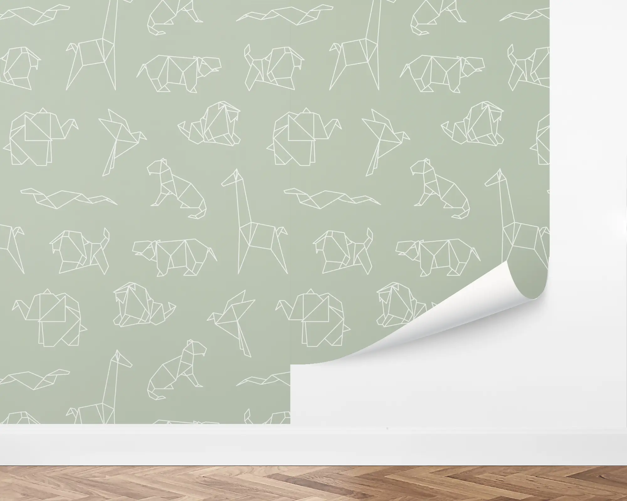 Create a playfully modern atmosphere with our Oragami Safari peel and stick removable wallpaper. This unique, chic design features a whole zoo of adorable, origami folded animals-- lions, hippos, giraffes, and even elephants! Fully customizable with any of our beautiful colors, this design is the perfect way to spruce up your nursery, kids' room, or play center.