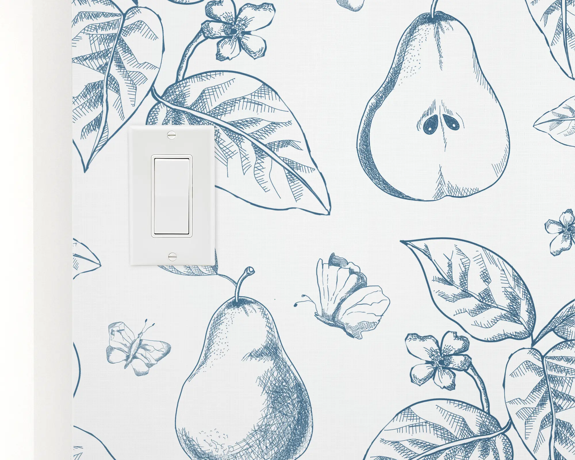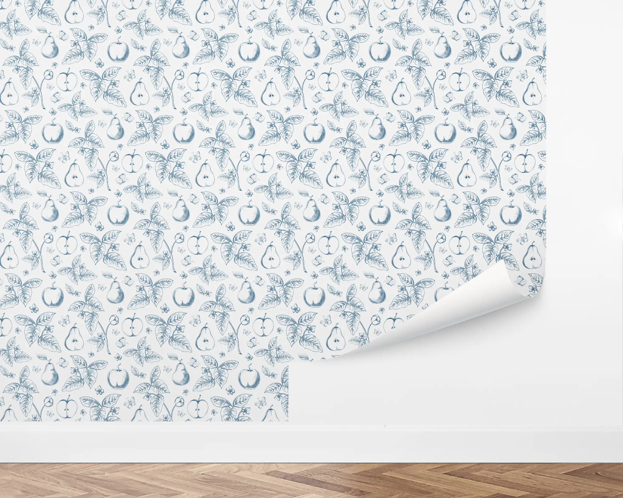 Our Orchard Fruits Peel and Stick Wallpaper are sure to add a rustic farmhouse feel to any room in your home. Honest illustrations of pears, apples, and sprigs are placed around a ceramic background. Personalize with your favorite colors to match your interior style perfectly!