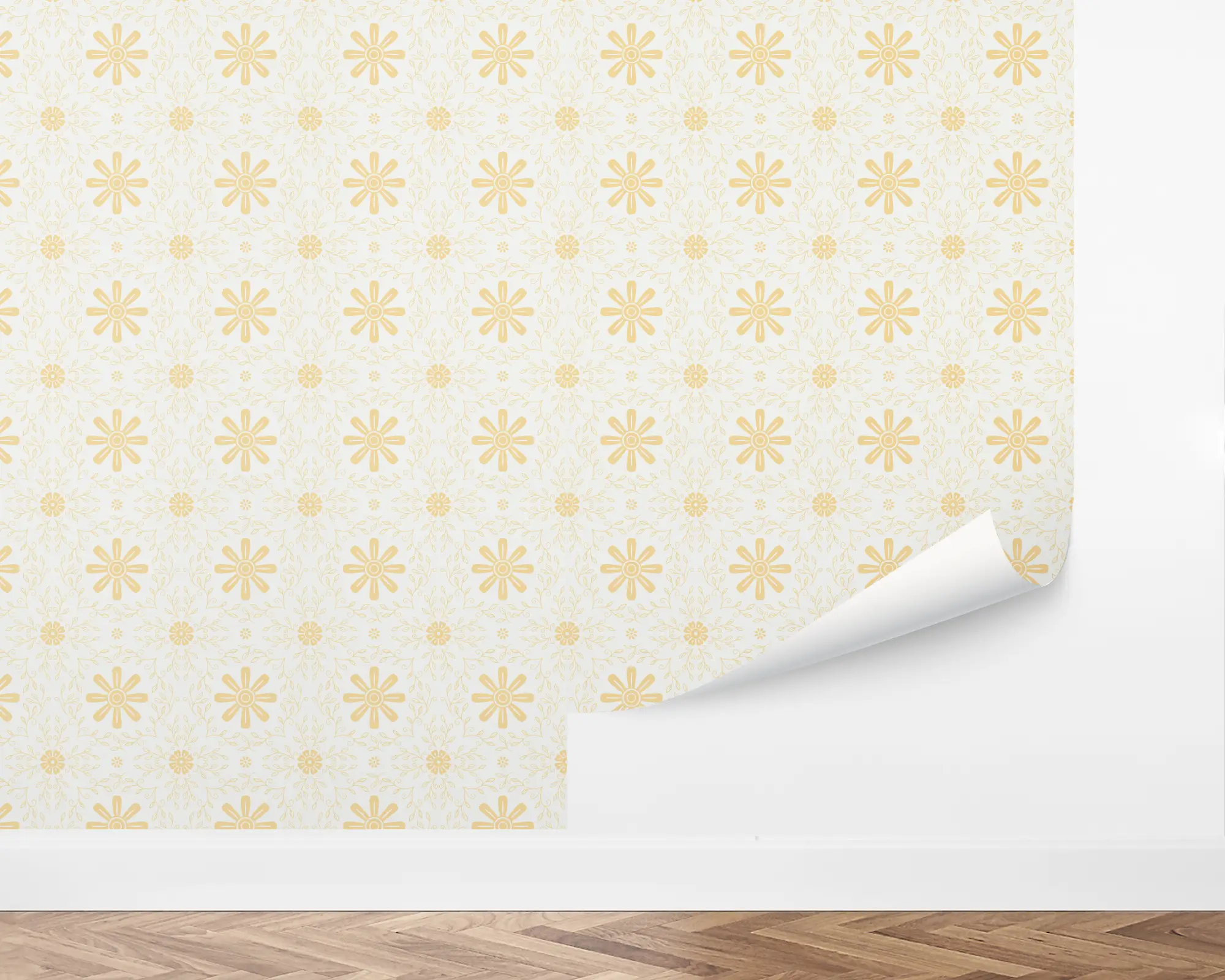 Create a sunny, grand millennial style in your home with our Ornamental Florals Peel and Stick Removable Wallpaper. This fun design features an ornate motif of vines and daisies over a light background. Fully customizable with any of our beautiful colors, this design is the perfect way to light up any room.