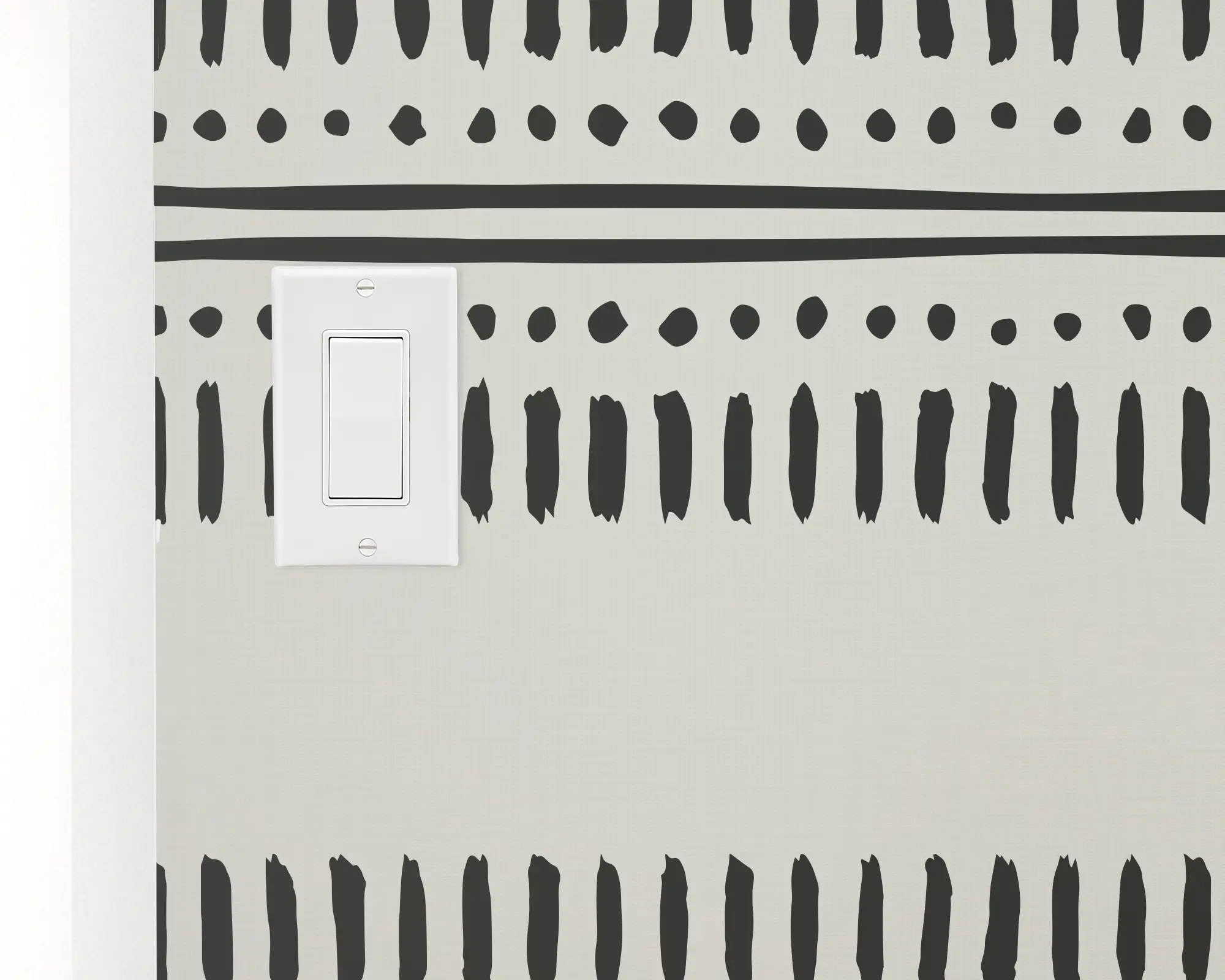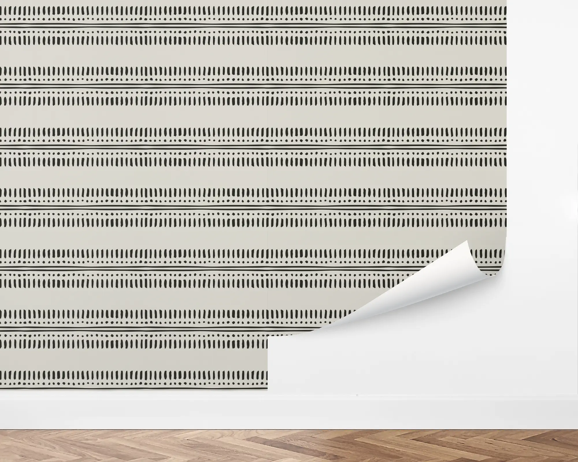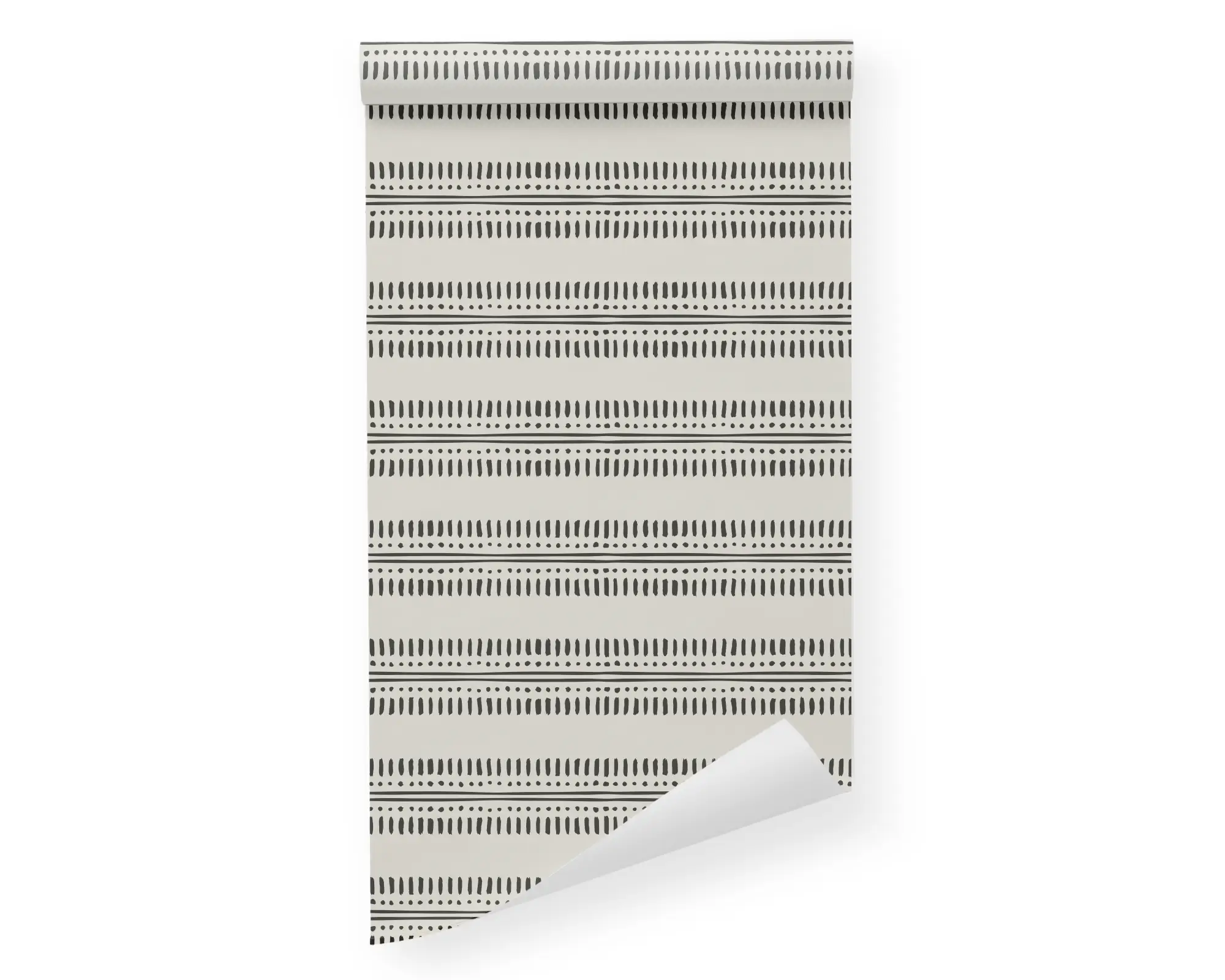 Create a neutral, contemporary space in your home with our Painted Mudcloth Peel And Stick Removable Wallpaper. This modern design features a charcoal-colored painted pattern atop a neutral canvas background. Customize your wallpaper with our array of color options to be perfect for your home!