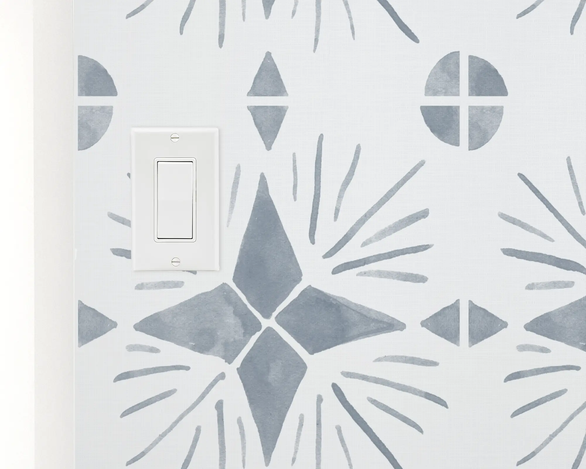 Reinvent your space with our Painted Tiles Wallpaper. This design features a geometric, rustic pattern of tiled stars and other accents. Fully customizable with any of our beautiful colors, this design is the perfect way to bring some charm into your home.