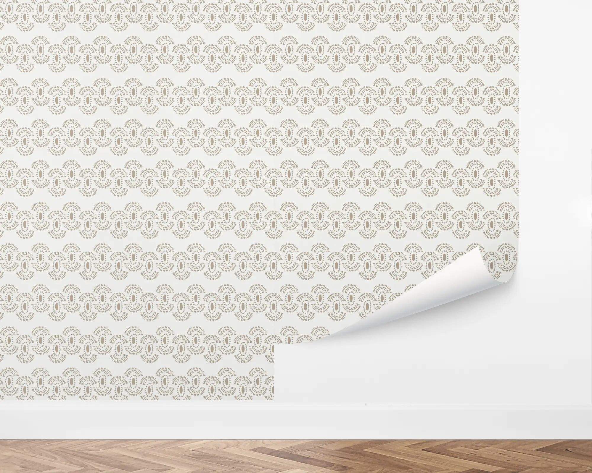 Add a touch of bohemian flair with our Pattern Beige Wallpaper. This design features a small, repeating motif of dots in wave and ring patterns. Fully customizable with any of our beautiful colors, this design is perfect for a subtly unique redesign.