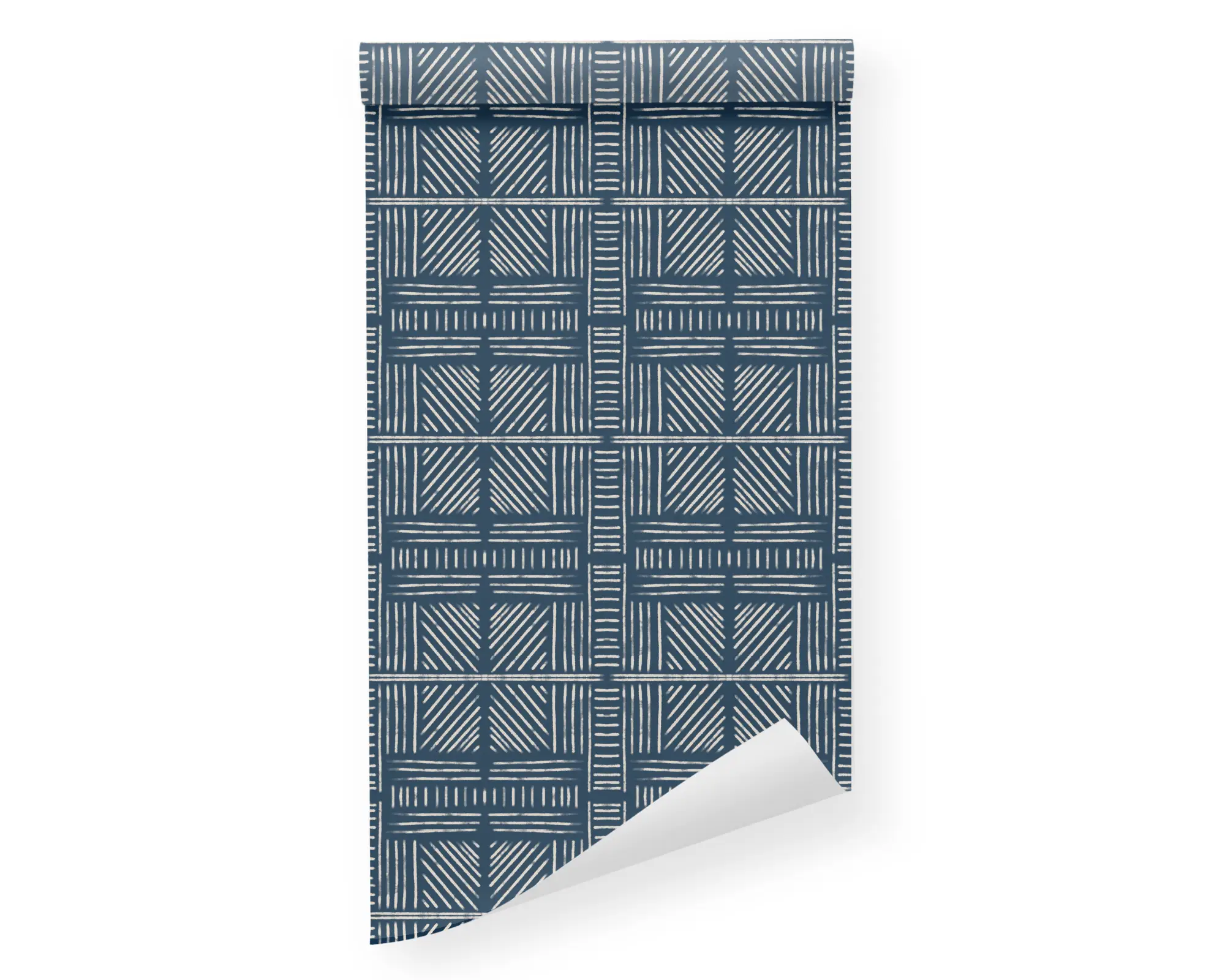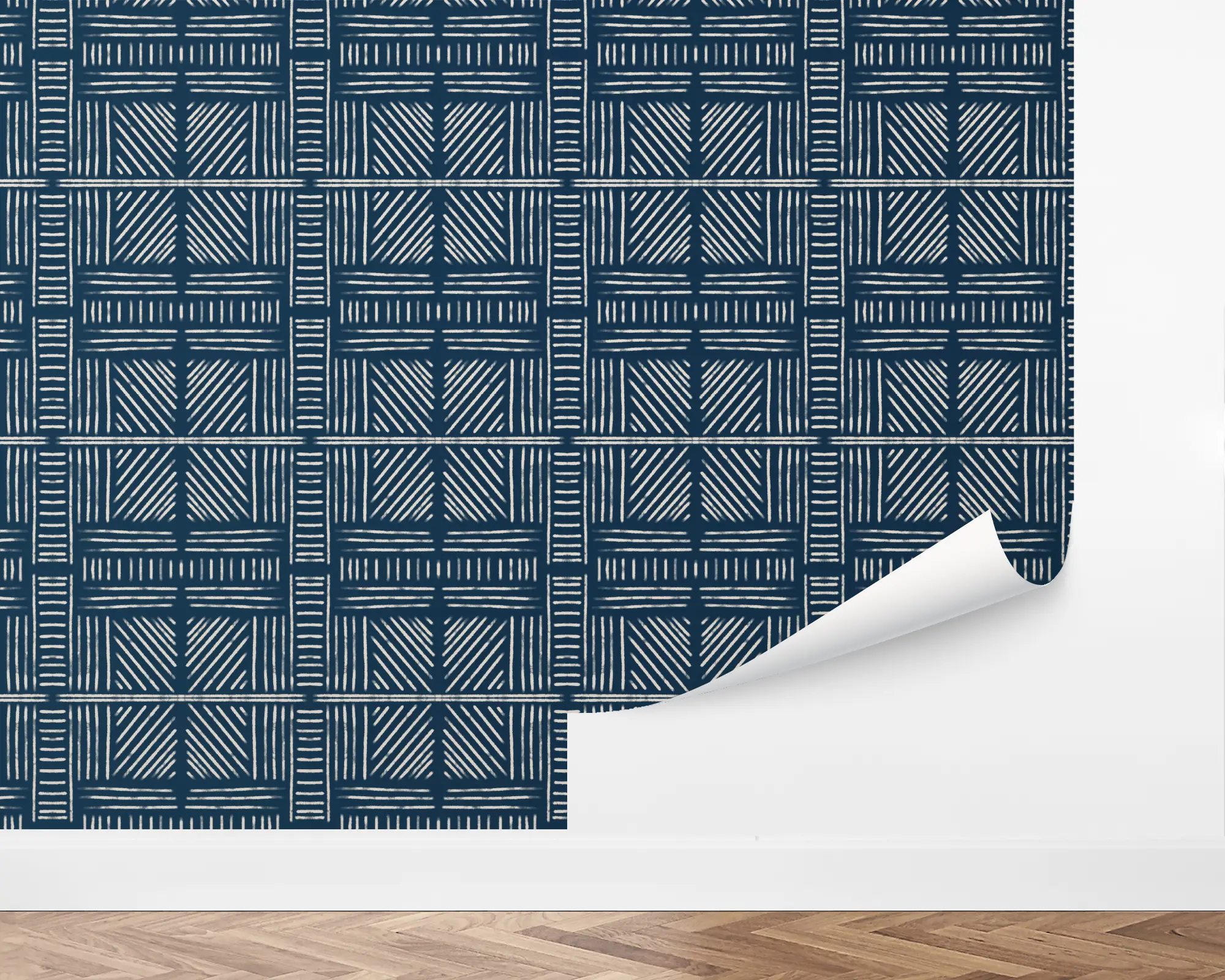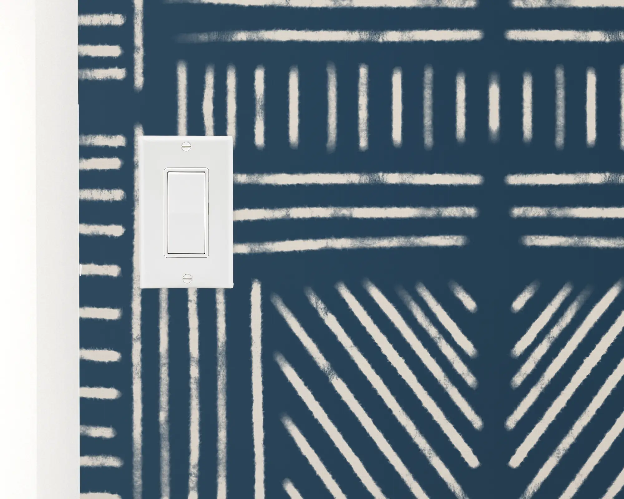 Create an elegant yet exotic feel in your favorite space with our Pattern Play peel and stick removable wallpaper. This batik-inspired wallpaper features a stylish series of lines in various patterns over a deep, indigo background. Fully customizable with any of our beautiful colors, this wallpaper is the perfect way to renew any room.