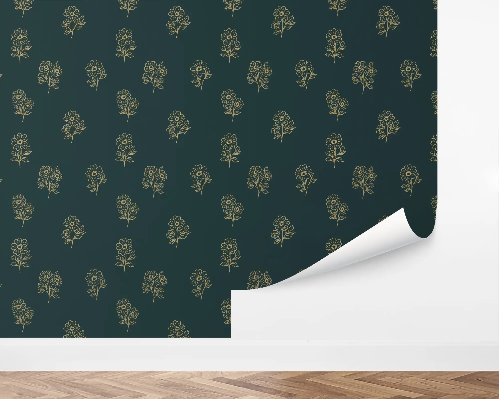 Add some natural charm to any space with our Petit Posie peel and stick removable wallpaper. This classic design features small, hand-drawn blossoms evenly spaced out over a deep green background. Fully customizable with any of our stunning colors, this wallpaper is perfect for any room that needs a little extra something.