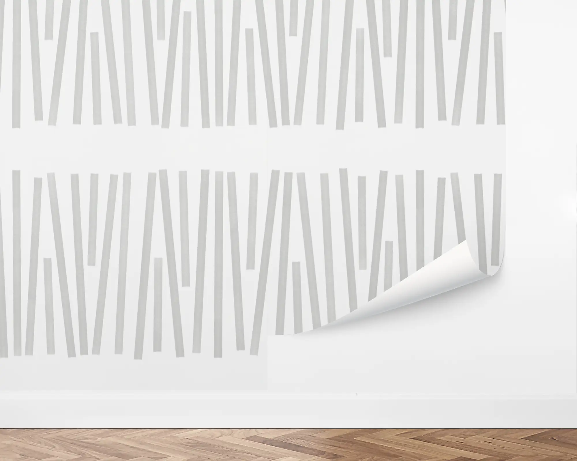 Our Pick Up Sticks Peel And Stick Removable Wallpaper is the perfect design to bring added comfort to your space! Against a white background, textured gray sticks of differing lengths assemble into bold horizontal stripes across your walls.