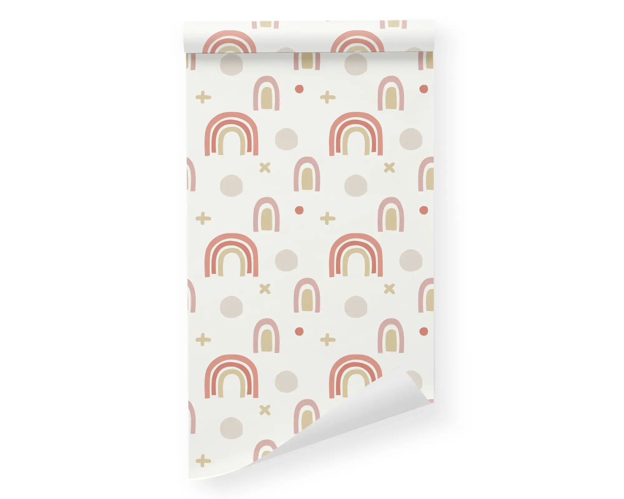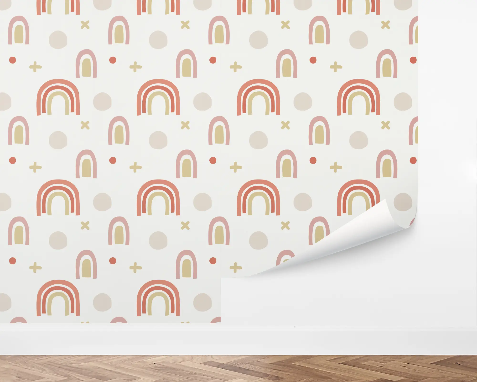 Create the room of your child's dreams with our Rainbow Horizons Peel And Stick Removable Wallpaper. Colorful, retro illustrations of rainbows form on top of a cream-colored background. Explore endless combinations of colors to match your interior perfectly!