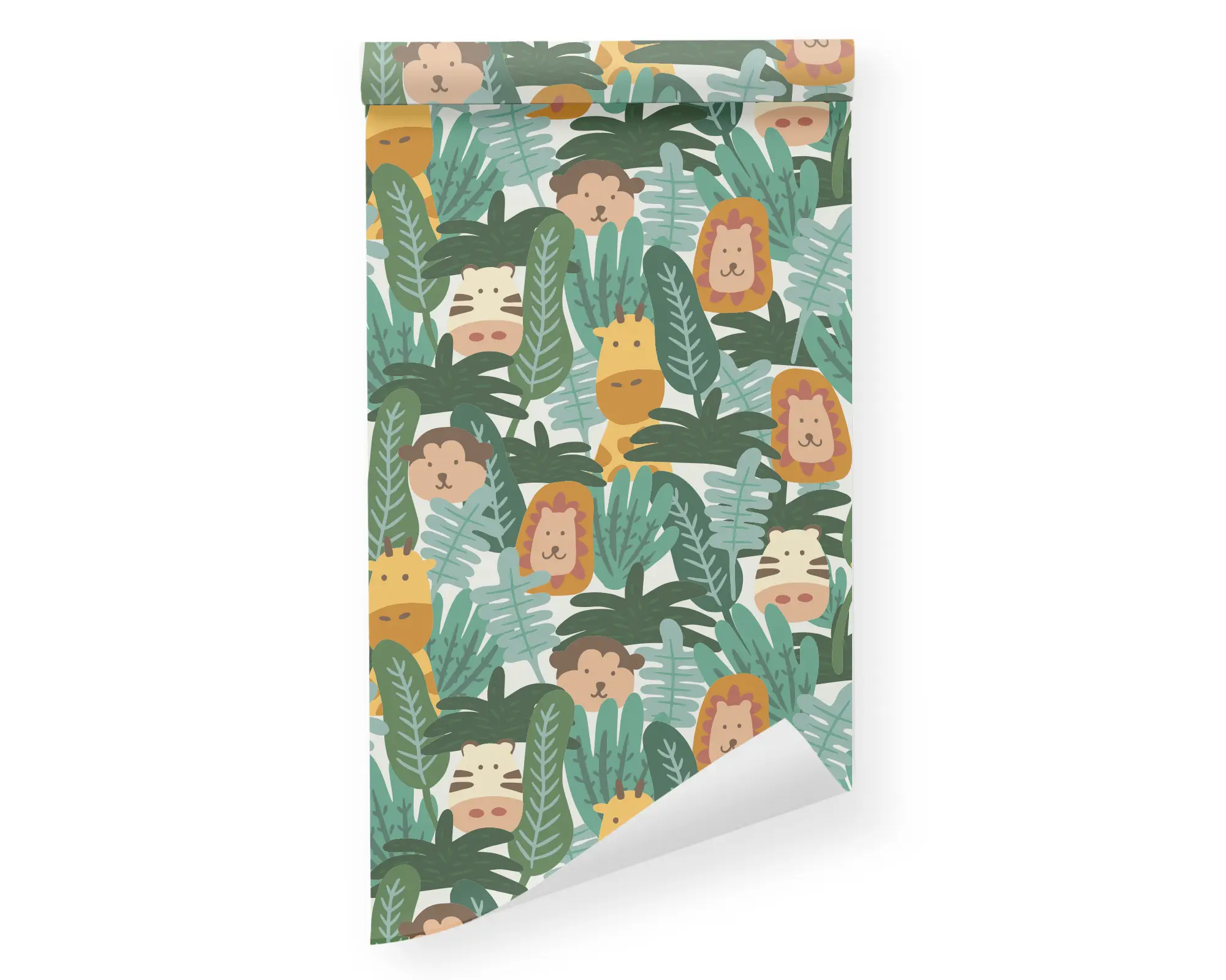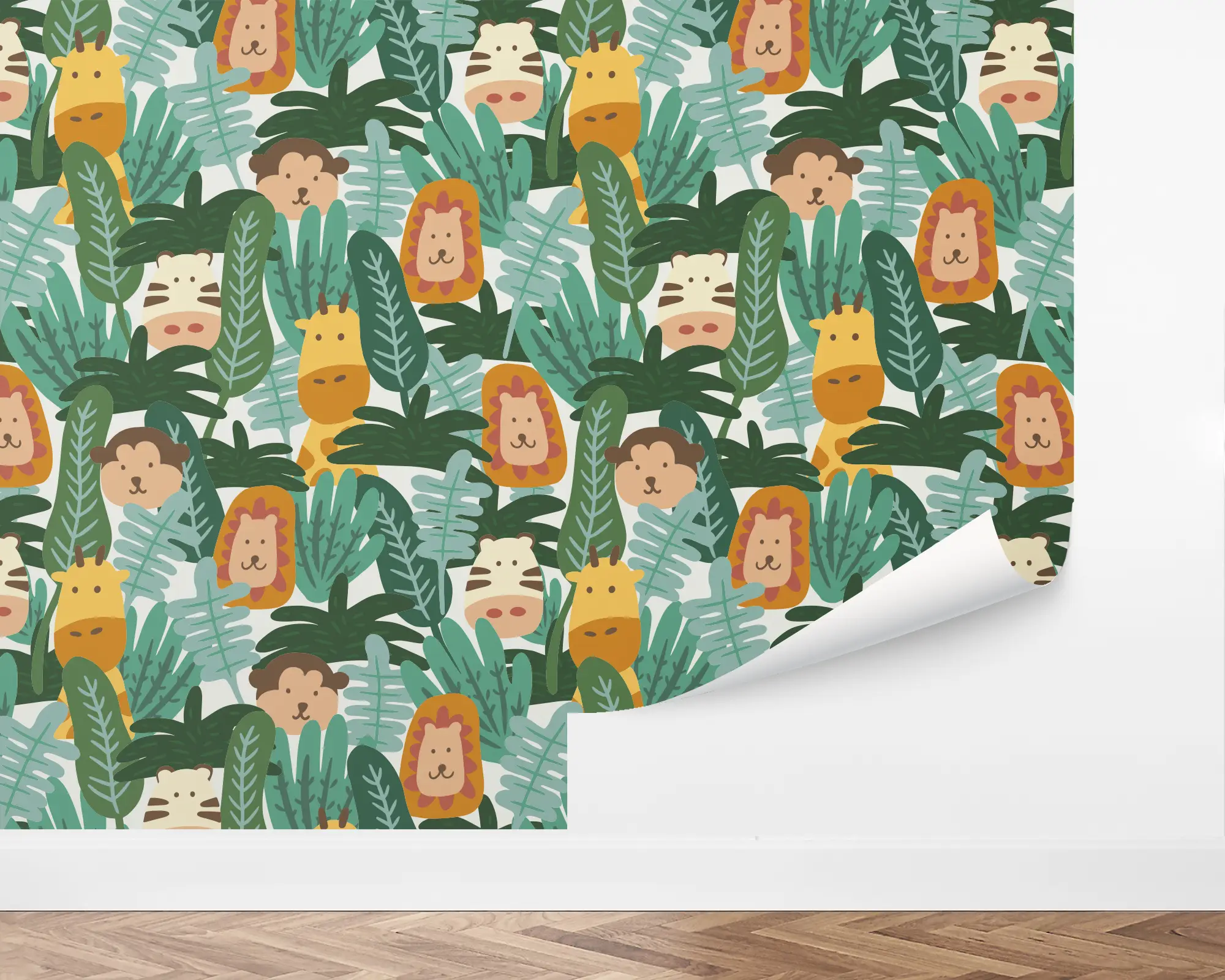 Add a wildly fun touch to your child's room with our Safari Fun Peel and Stick Removable Wallpaper! This bright and colorful wallpaper features adorably simplified illustrations of giraffes, lions, zebras, and monkeys nestled in jungle greenery. Choose from hundreds of possible colors to personalize the wallpaper and create a one-of-a-kind pattern that perfectly suits your space.