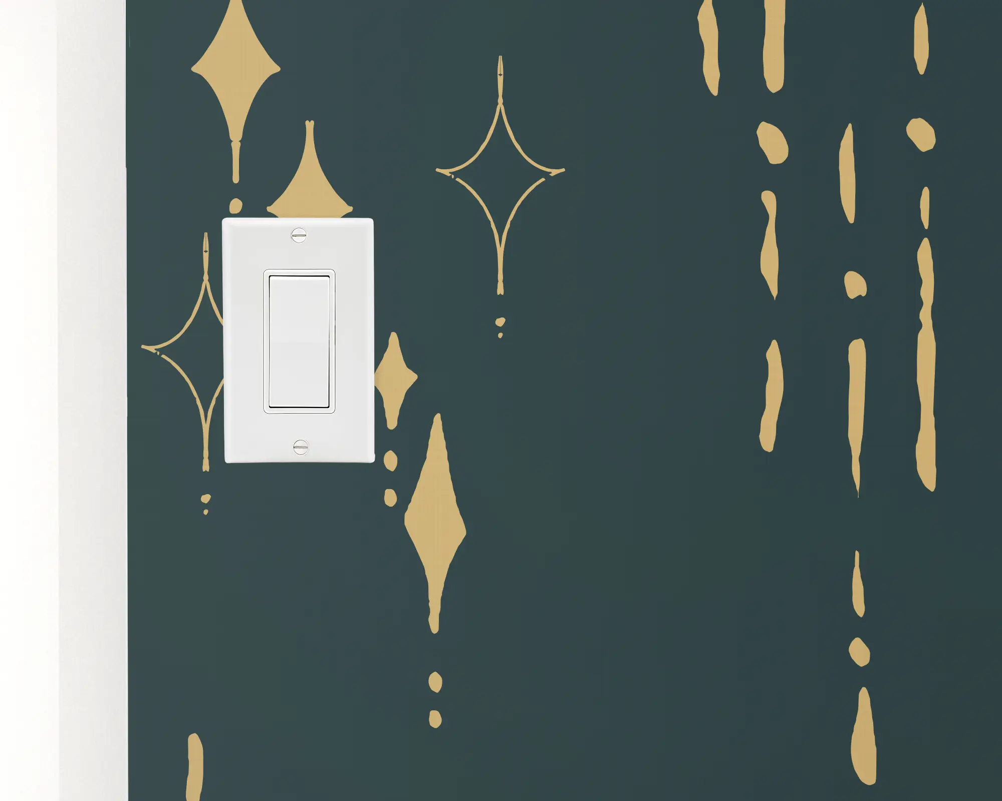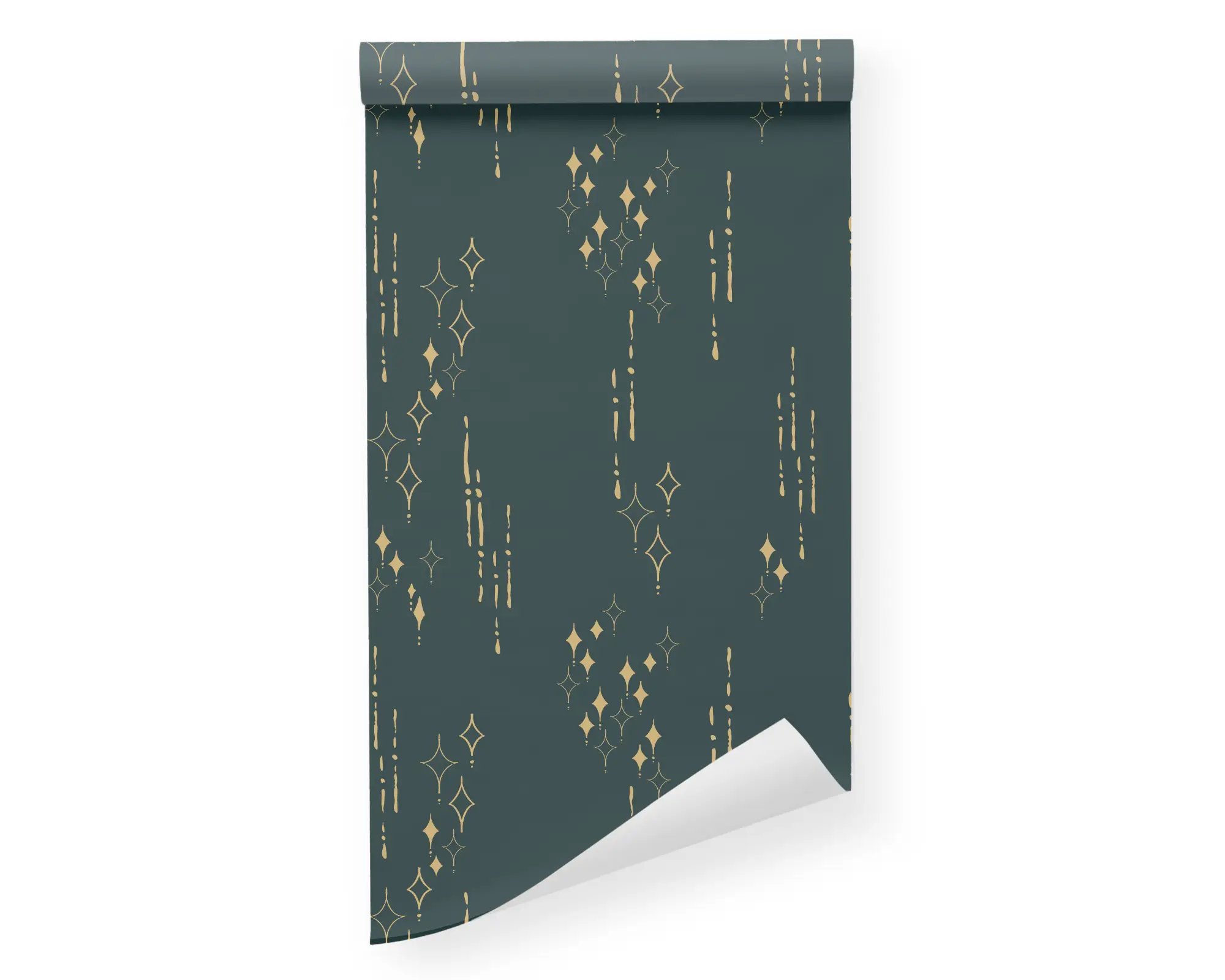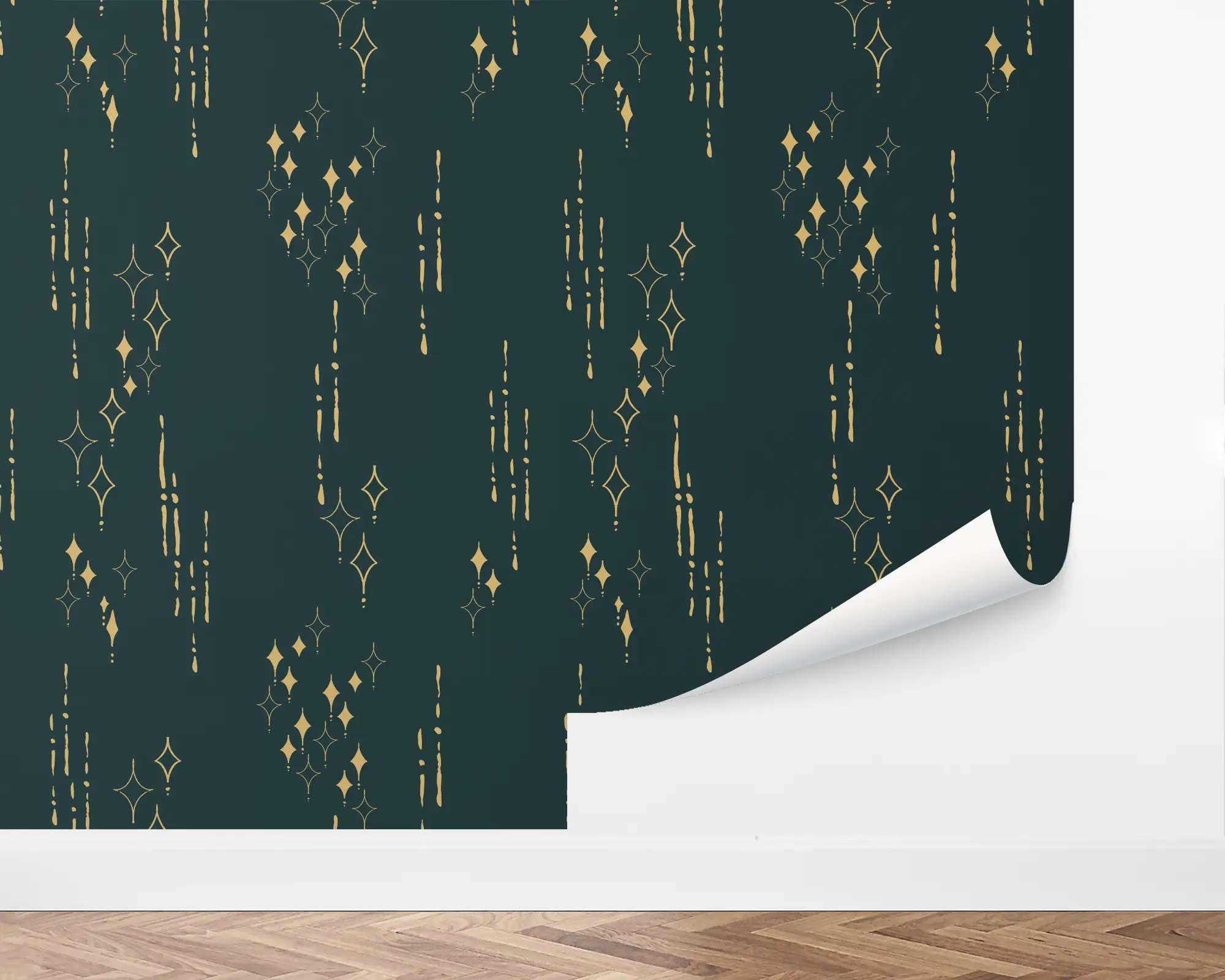 Add some textured, retro influenced flair to any wall with our Shining Stars Peel and Stick Removable Wallpaper. Retro style golden stars and dotted lines, with a hand printed texture, trail down a dark Velvet green background, or change all the colors for a fully customized design. With hundreds of colors to chose from, you can create a truly custom wallpaper that perfectly suits your style!