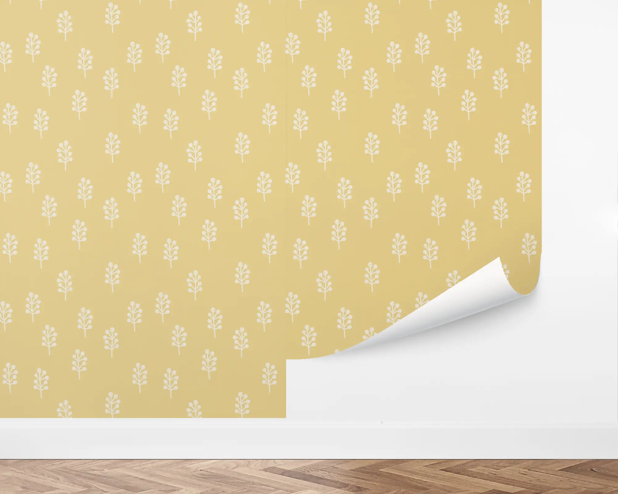 Our Simple Wood Peel And Stick Removable Wallpaper is a simple design that is sure to add some flair to any wall in your interior! Cute illustrated branches in light yellow saturate a canary yellow surface. Customize this wallpaper to fit your personal style and your interior with our variety of color options available!