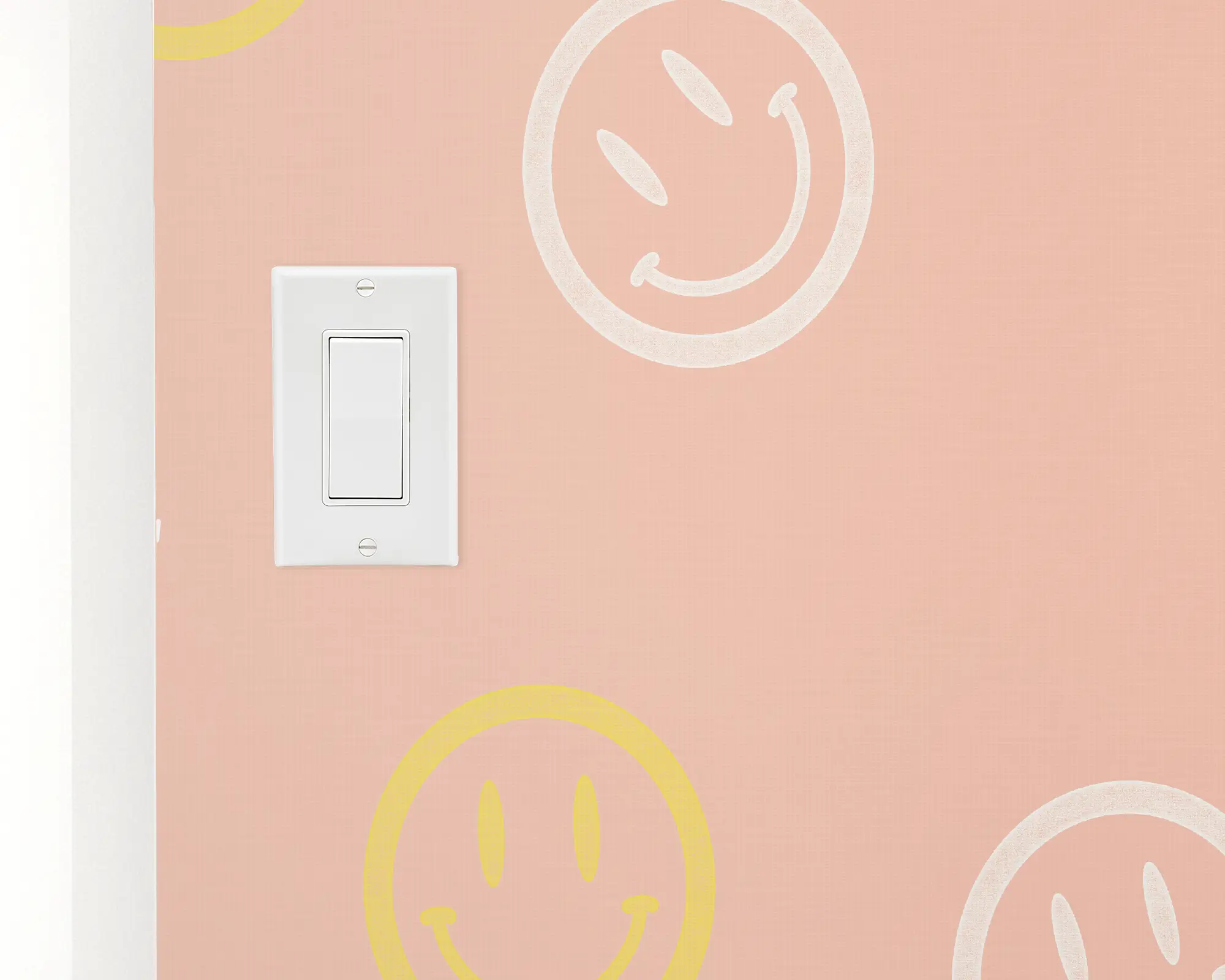 Our Smiley Face Peel and Stick Wallpaper adds a retro and funky touch to any room in your home. Ceramic and bright illustrations of the iconic 70s smiley faces are stamped on top of an azalea background. Choose from endless color combinations to match your interior style perfectly!