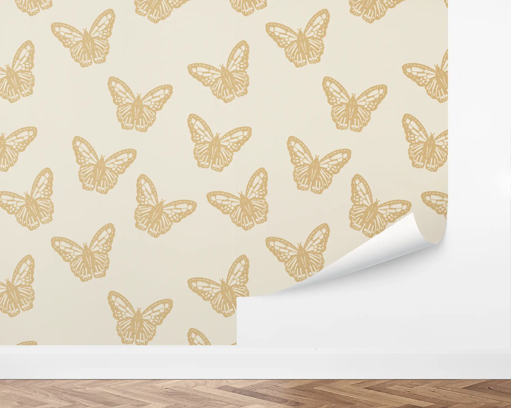 Create a lively atmosphere with our Stamped Butterflies Peel and Stick Removable Wallpaper. This enchanting design features monochrome butterflies fluttering across a neutral background. Fully customizable with any of our gorgeous colors, this wallpaper is perfect for any explorer at heart.