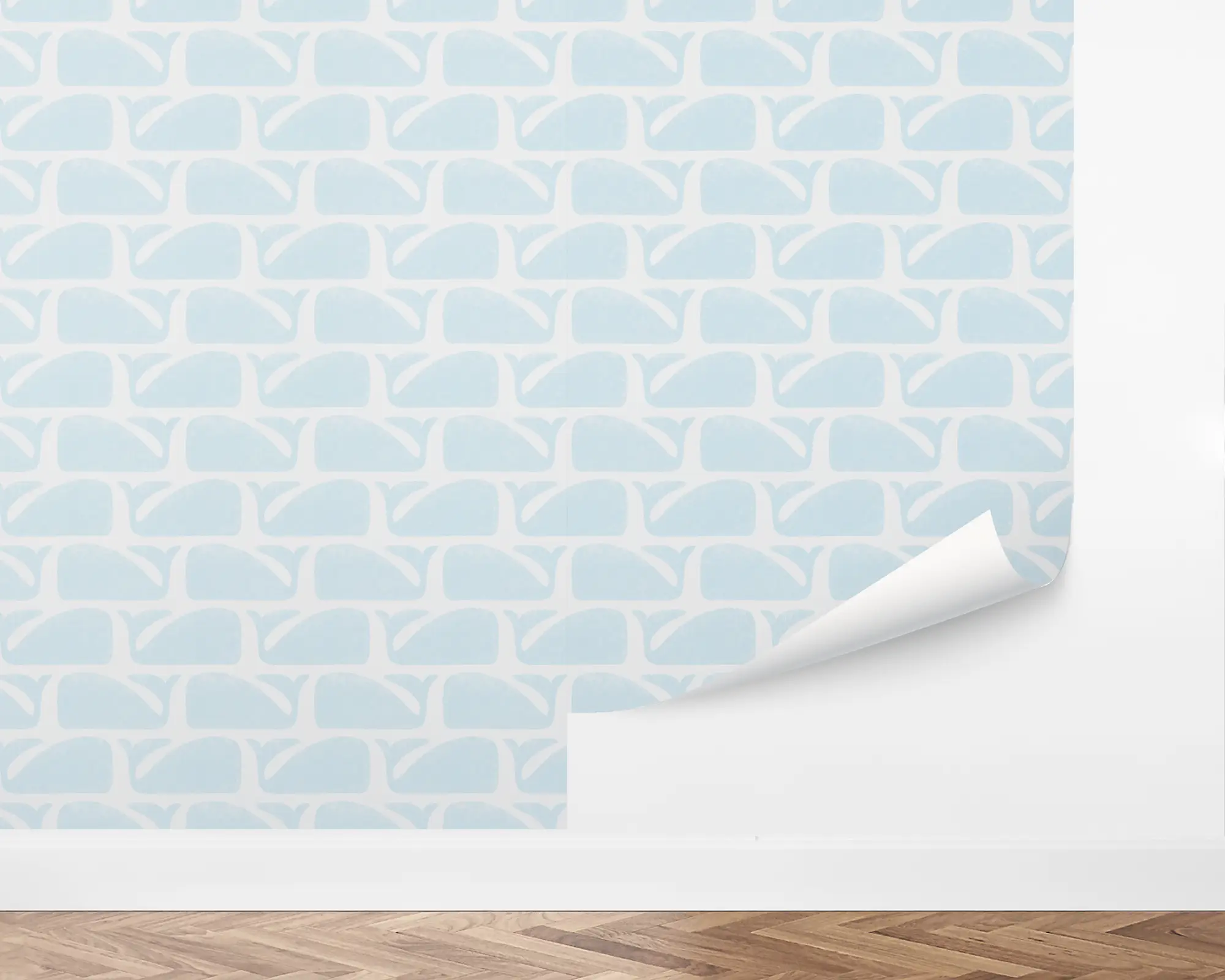 Create a nautical accent wall in any room of your home with our Stamped Whales Peel and Stick Wallpaper. Textured, alpine illustrations of whales are painted on top of an eggshell background. Pick out your favorite colors to match your personal style perfectly!
