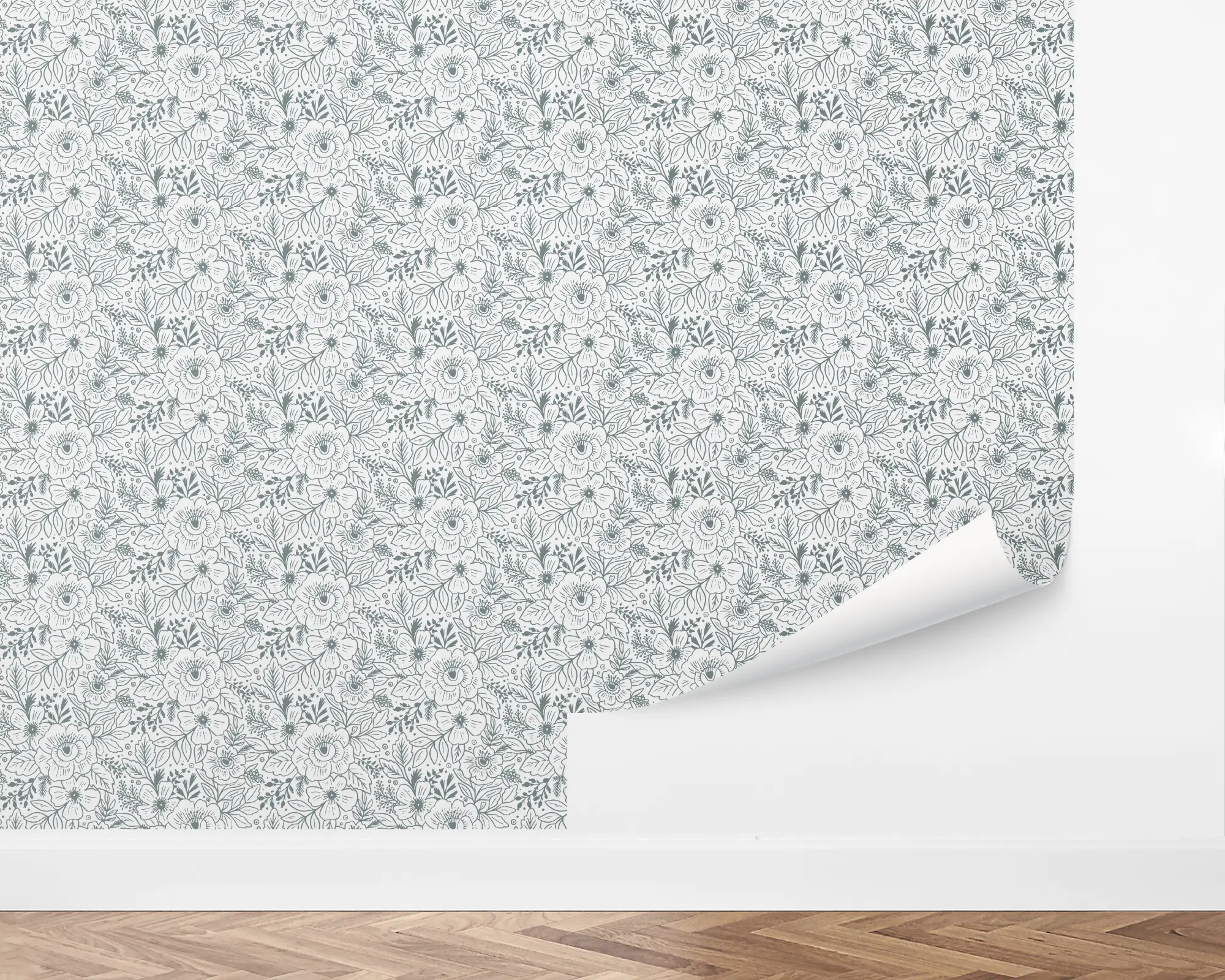 Reinvent your space with the classic, floral design of our Sunflower Fields peel and stick removable wallpaper. This pattern features blooming blossoms and foliage outlined over a white background. Fully customizable with any of our beautiful colors, this design is perfect for any room.