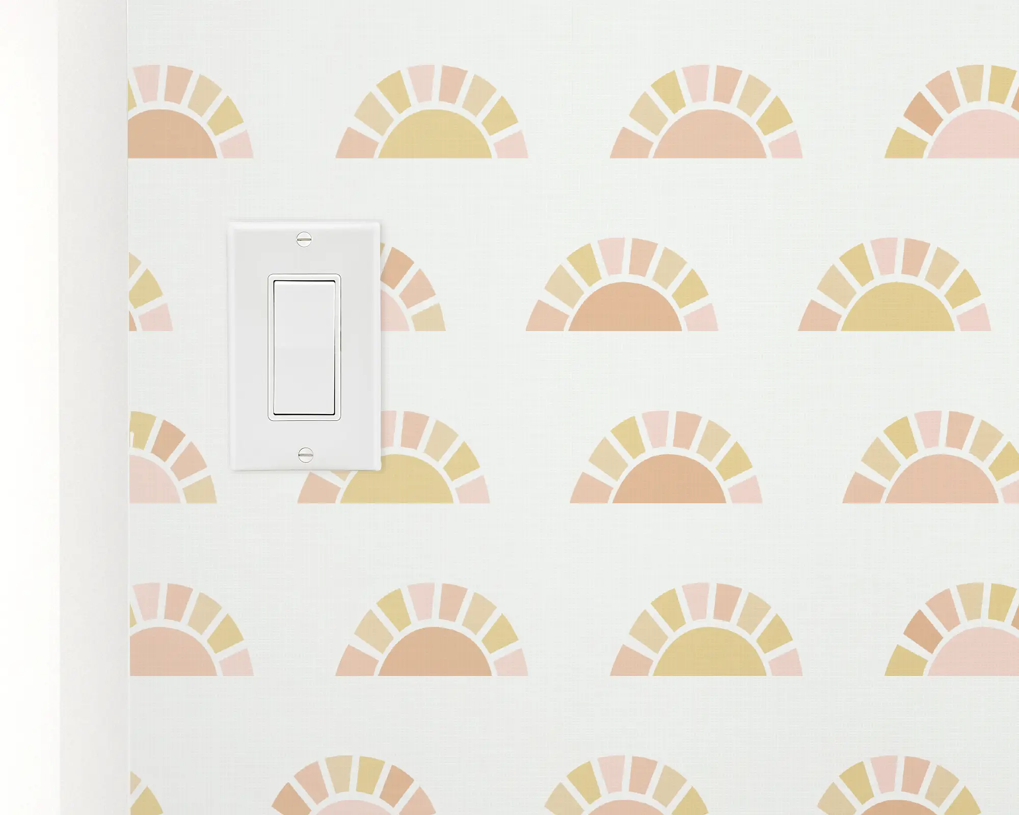 Mix up the look of your child's room with our Sunshine Scallop Peel And Stick Removable Wallpaper. Color illustrations of suns in a scallop pattern rise on top of a cream-colored background. Customize these cards with different combinations of colors to be perfect!