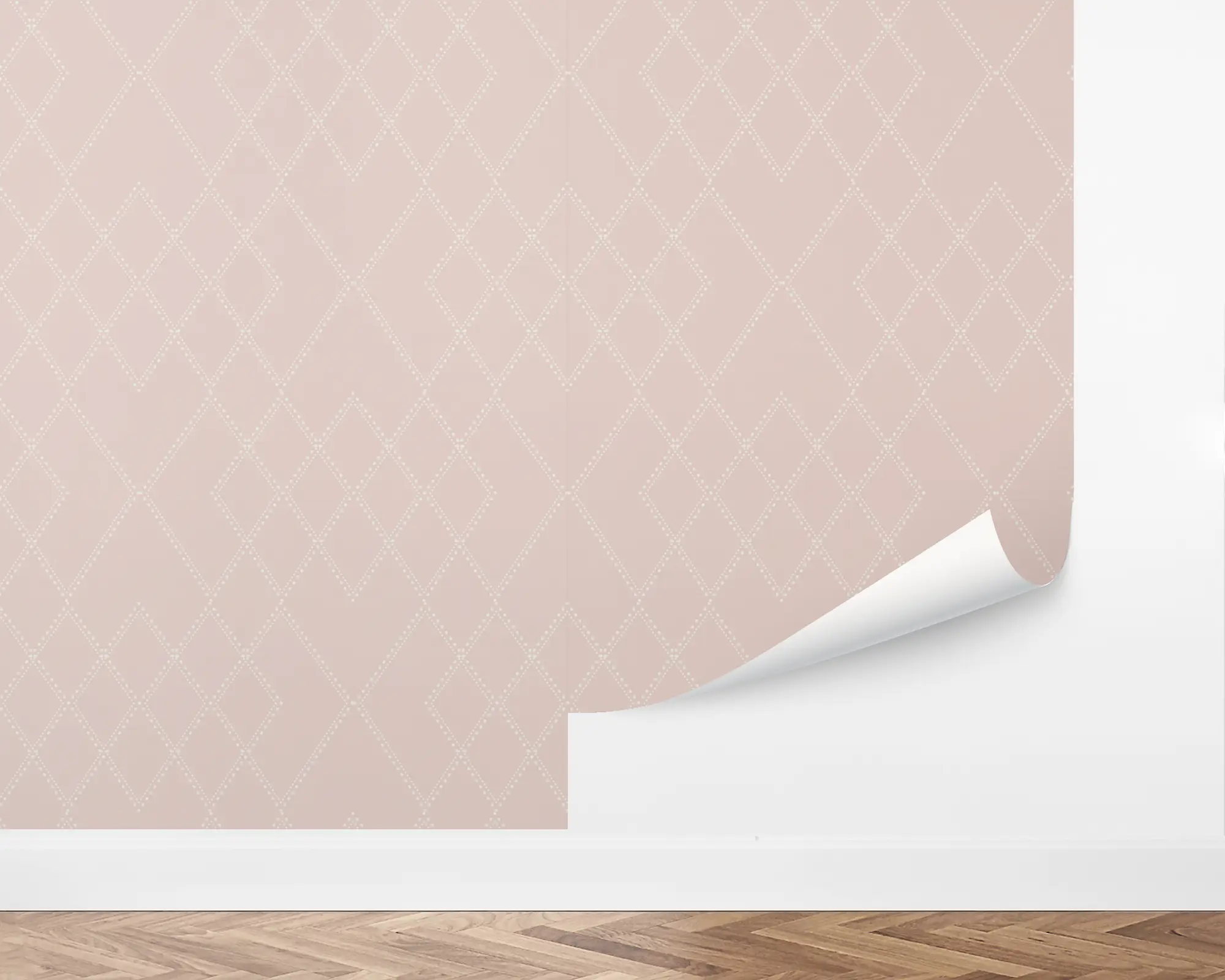 Add a charming touch to your next design project with our Sweet Argyle peel and stick removable wallpaper. This soft design features a delicate, dotted argyle pattern over a pink background. Fully customizable with any of our colors, this wallpaper might be just the touch your space needs.