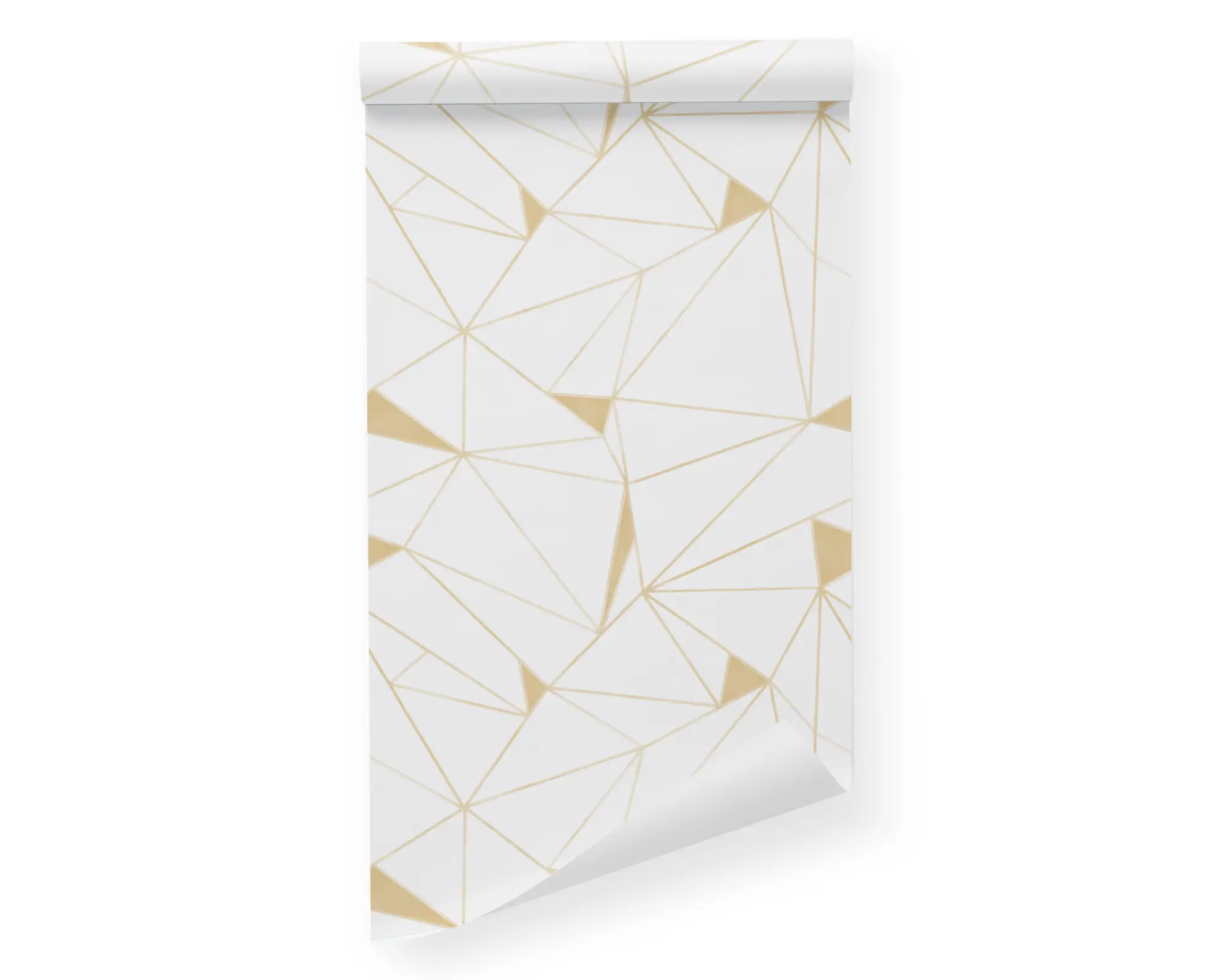 Add some pizzazz to any space with our Triangle Maze Peel And Stick Removable Wallpaper. This design features fractured, gold prisms painted across a white background. Fully customizable with any of our beautiful colors, this wallpaper is the perfect way to breathe new life into any room.